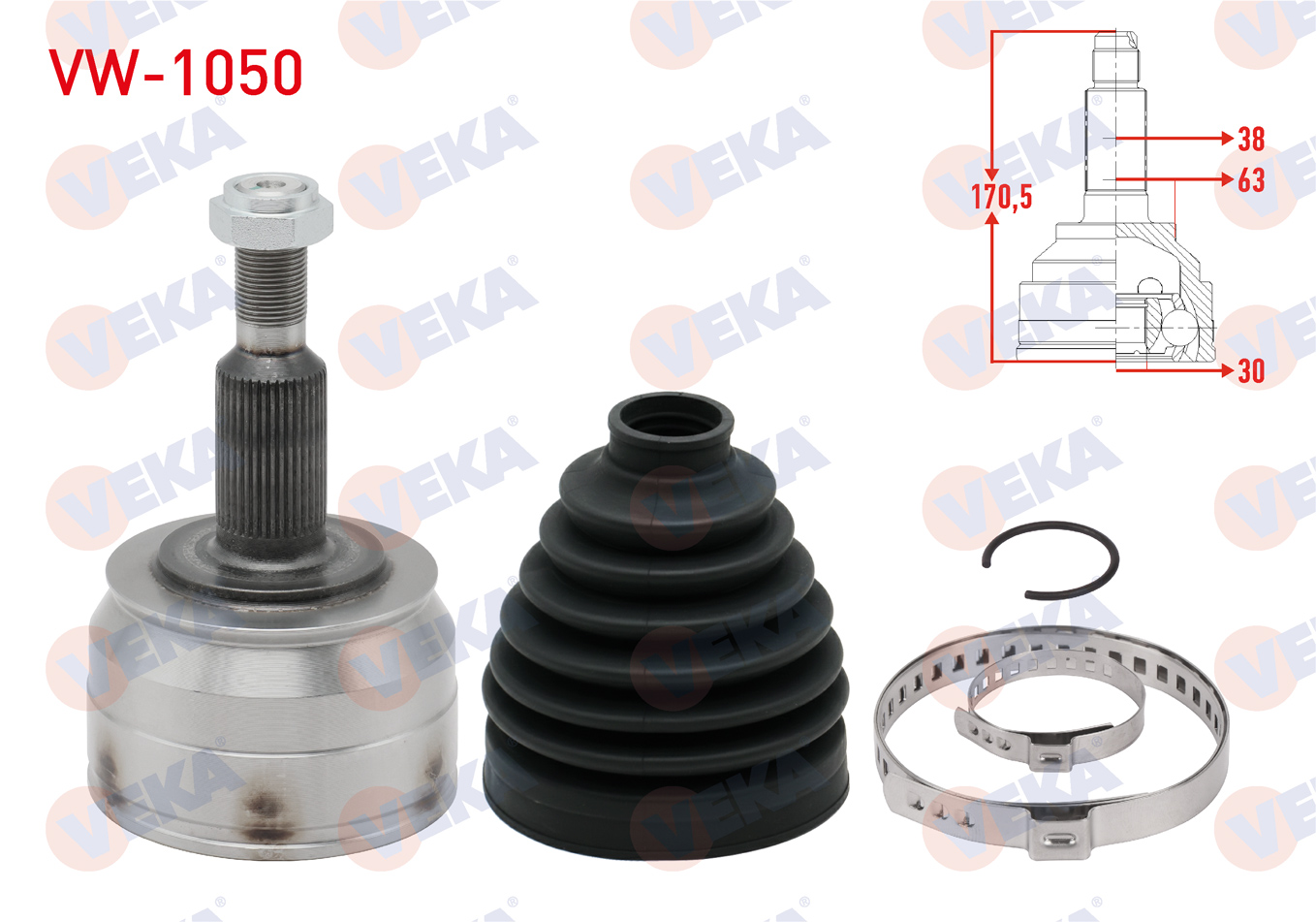 VEKA VW-1050 | Aks Kafası Sol-Sağ On Dıs Volkswagen Transporter VI 2.0 TDI M-T 38X30x63 Uzunluk 170,5 mm 2015 -