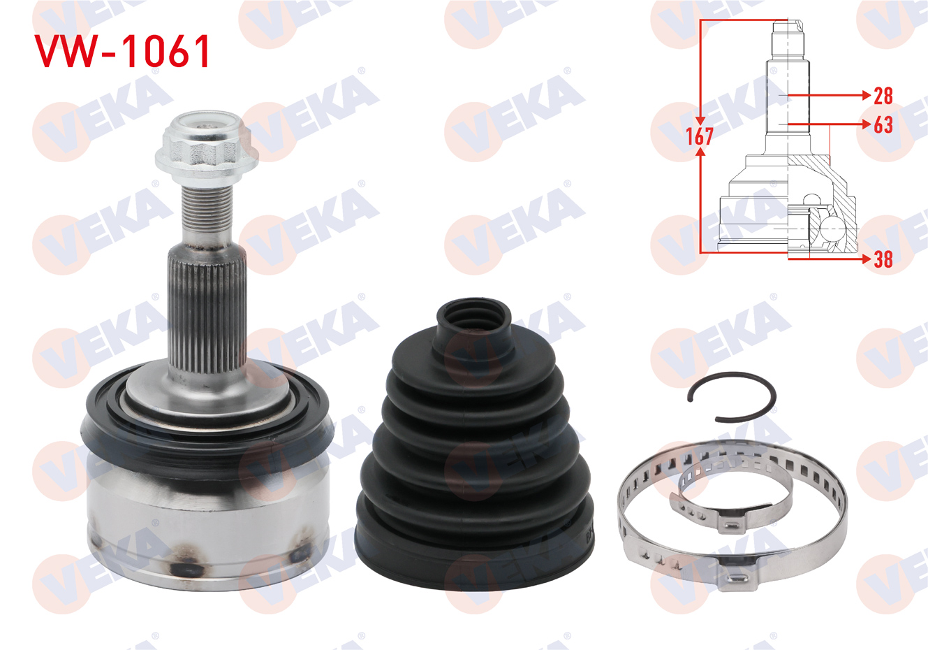 VEKA VW-1061 | Aks Kafası Sol-Sağ On Dıs Volkswagen Transporter VI 2.0 TDI M-T 38X28x63 Uzunluk 167mm 2009 -