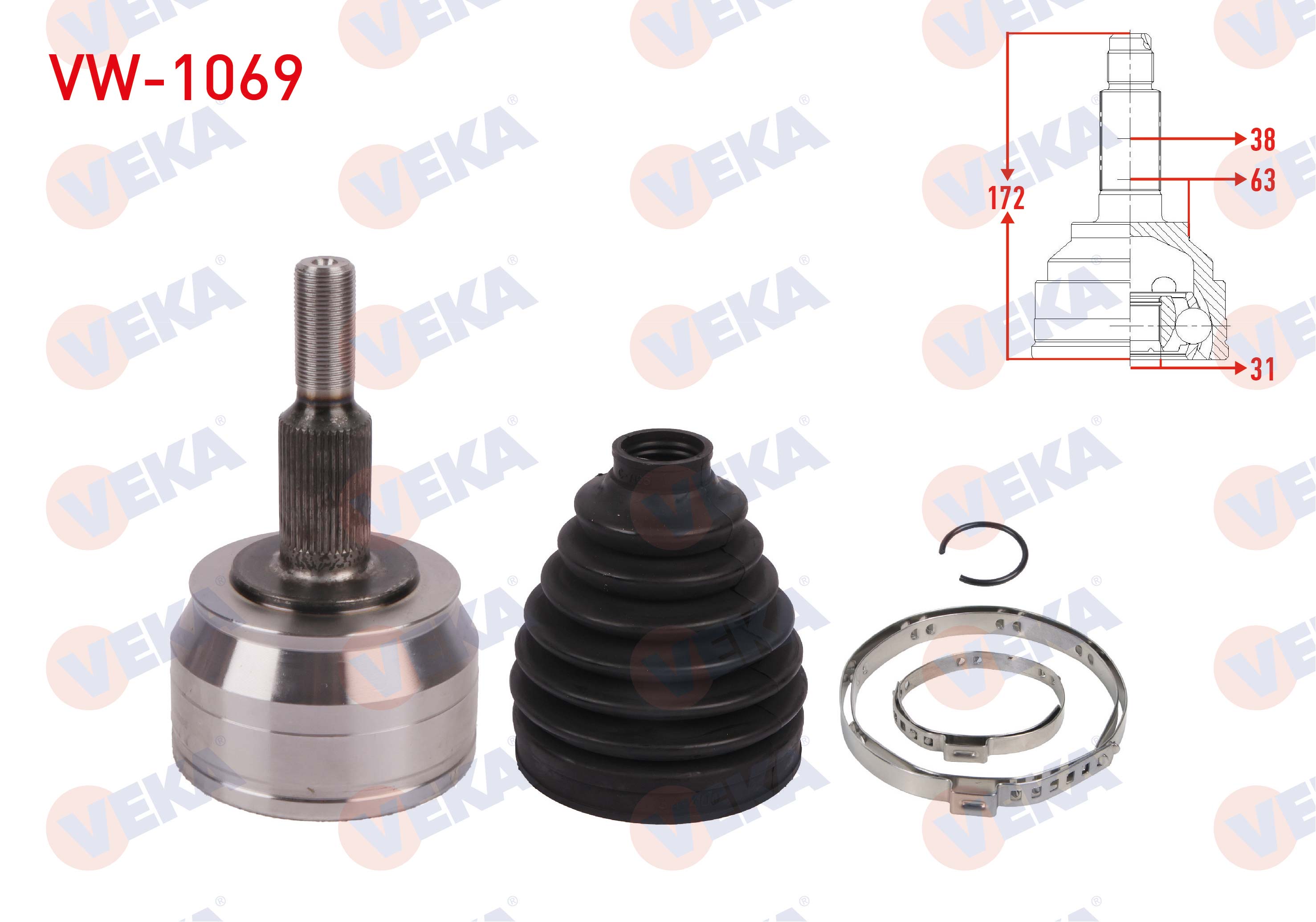 VEKA VW-1069 | Aks Kafası Sol-Sağ On Dıs 38X31x63 Uzunluk 172mm Volkswagen Transporter T6 2.0 TDI M-T 2015 -
