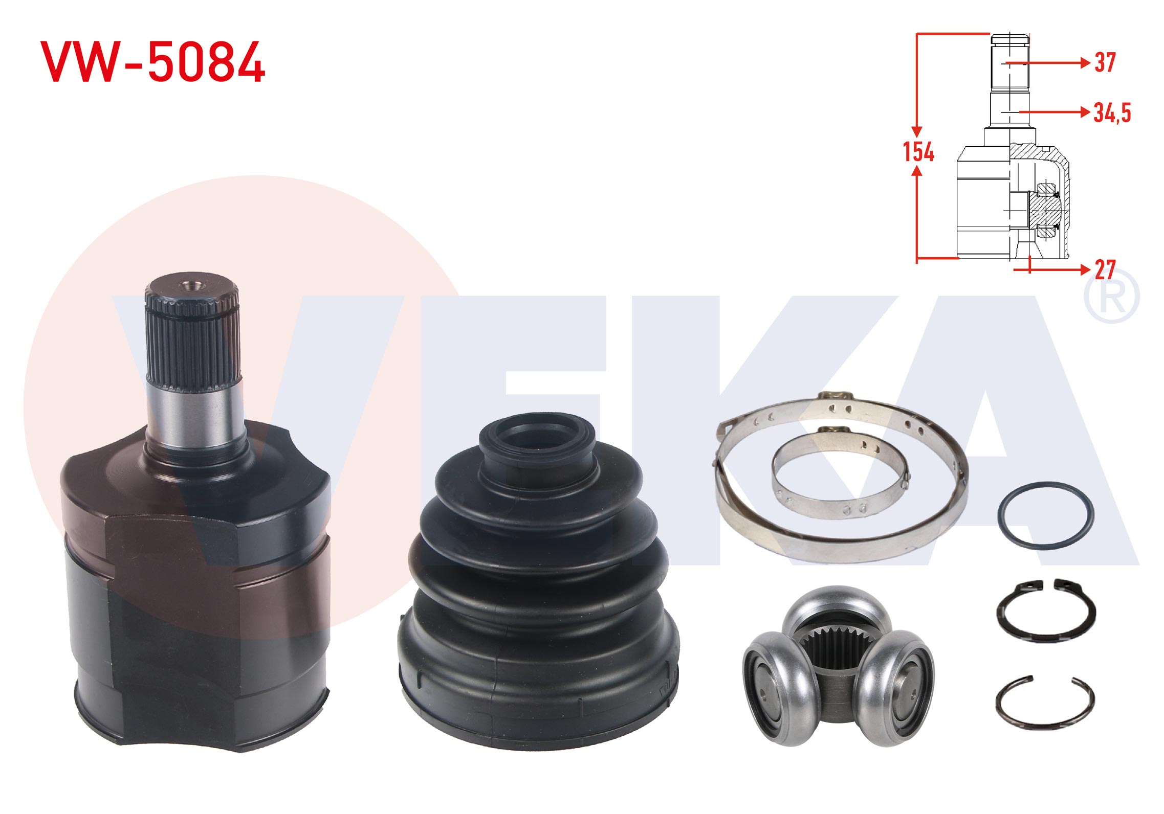 VEKA VW-5084 | Aks Kafası Sol Ön Ic 37X27x34,5 Uzunluk 154mm Volkswagen Transporter VI 2.0 TDI 140 Hp A-T 2009 -