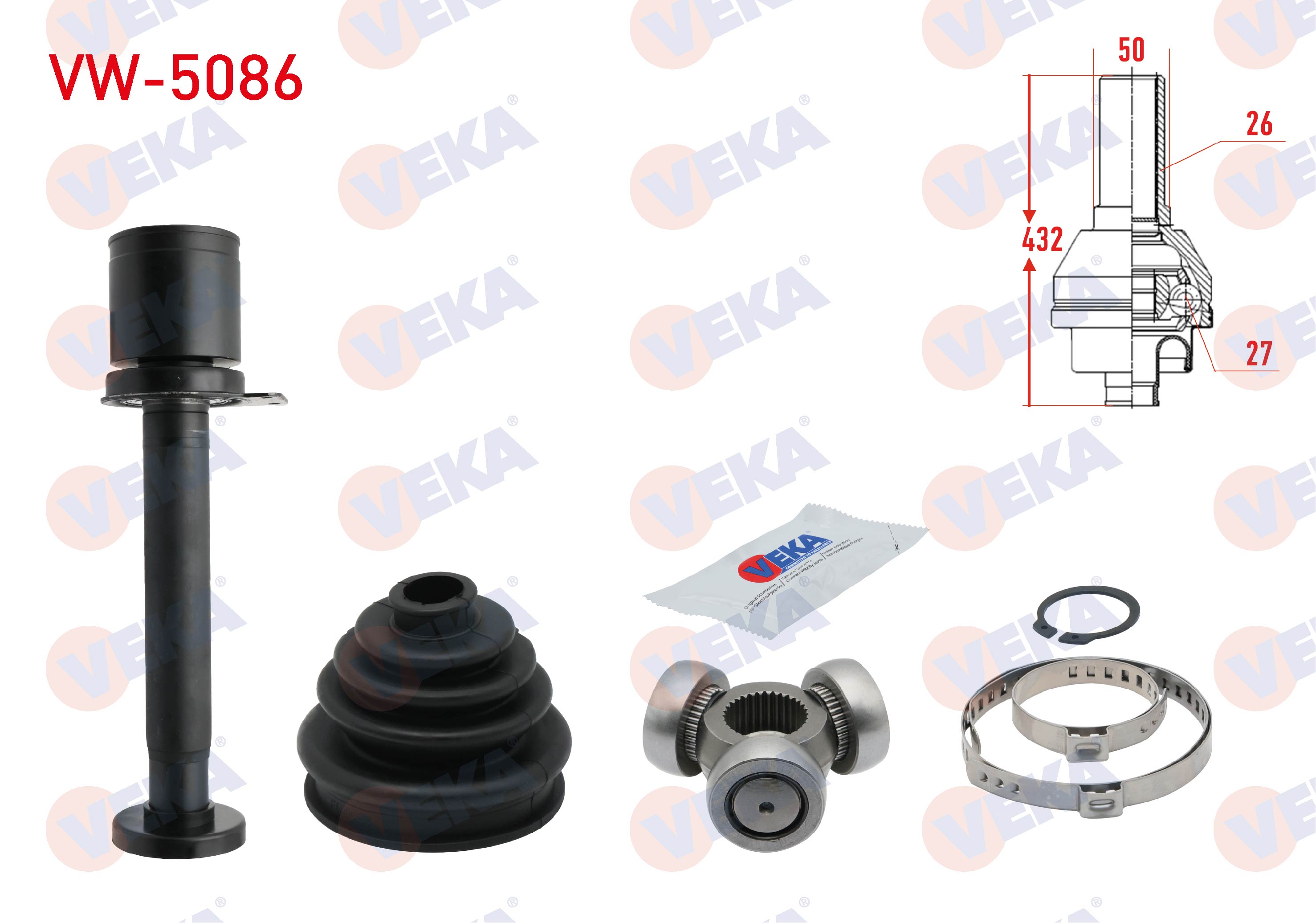 VEKA VW-5086 | Aks Kafası Sağ On Ic 26X27x50 Uzunluk 432mm Volkswagen Transporter V 1.9 TDI-2.0 TDI-2.0 Bıtdı 2003-2011