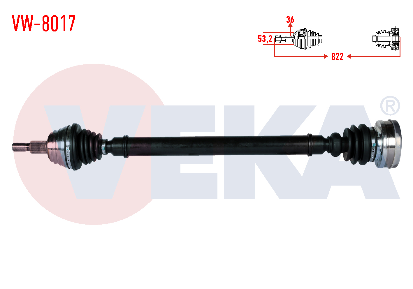 VEKA VW-8017 | Komple Aks Sağ On Volkswagen Golf IV (1J1) 1.9 TDI Uzunluk 822mm 1997-2005