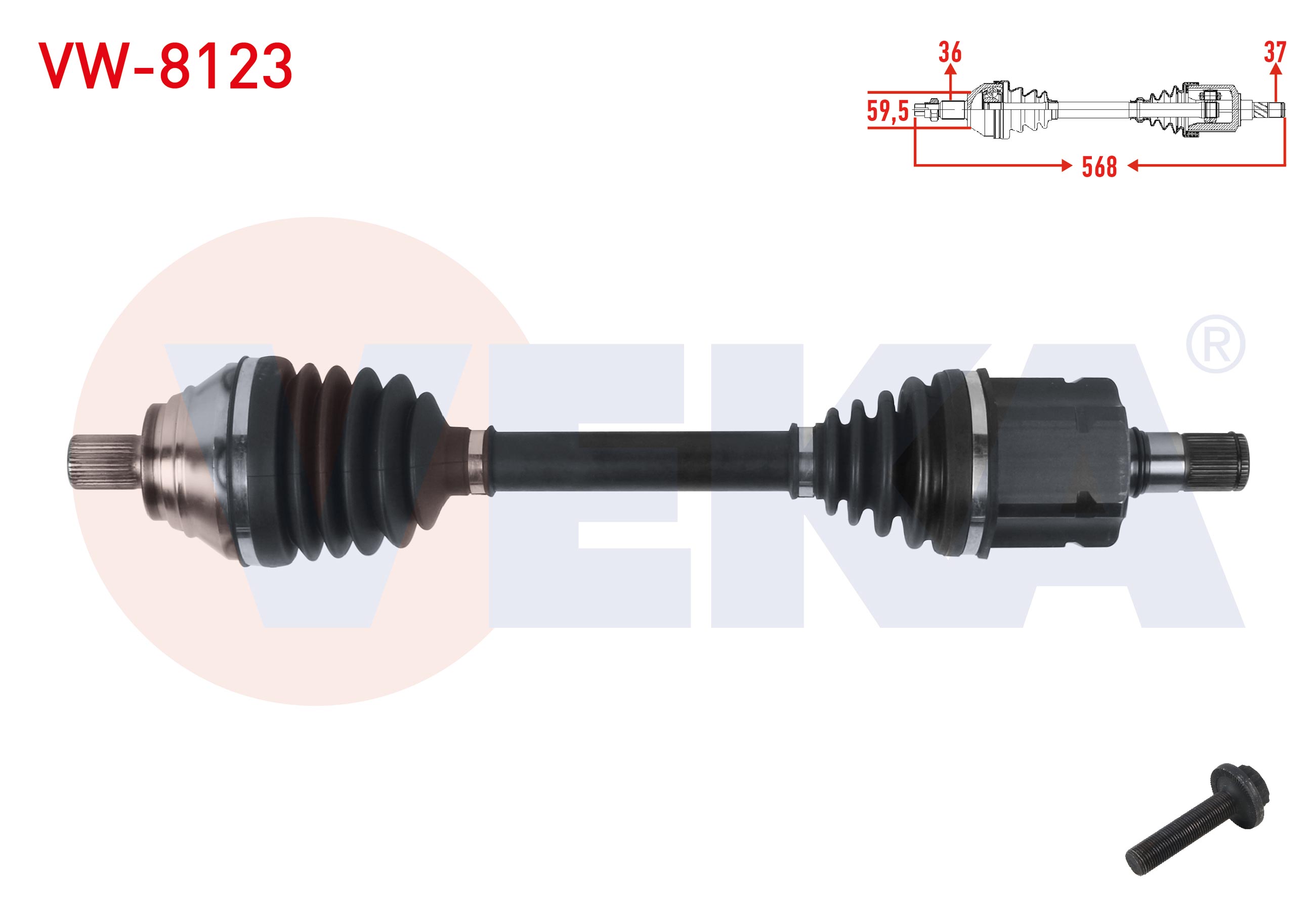 VEKA VW-8123 | Komple Aks Sol Ön Uzunluk 568mm Volkswagen Passat (3G2) 2014-Caddy V (Sk) 2021-Tiguan (Ad1) 2016-Arteon (3H7) 2.0 TSI A-T 2017-/ Audi Q3 (F3b) 2.0 TDI A-T 2018-/ Audi Q3 (F3b) 2.0 TDI A-T 2018 -