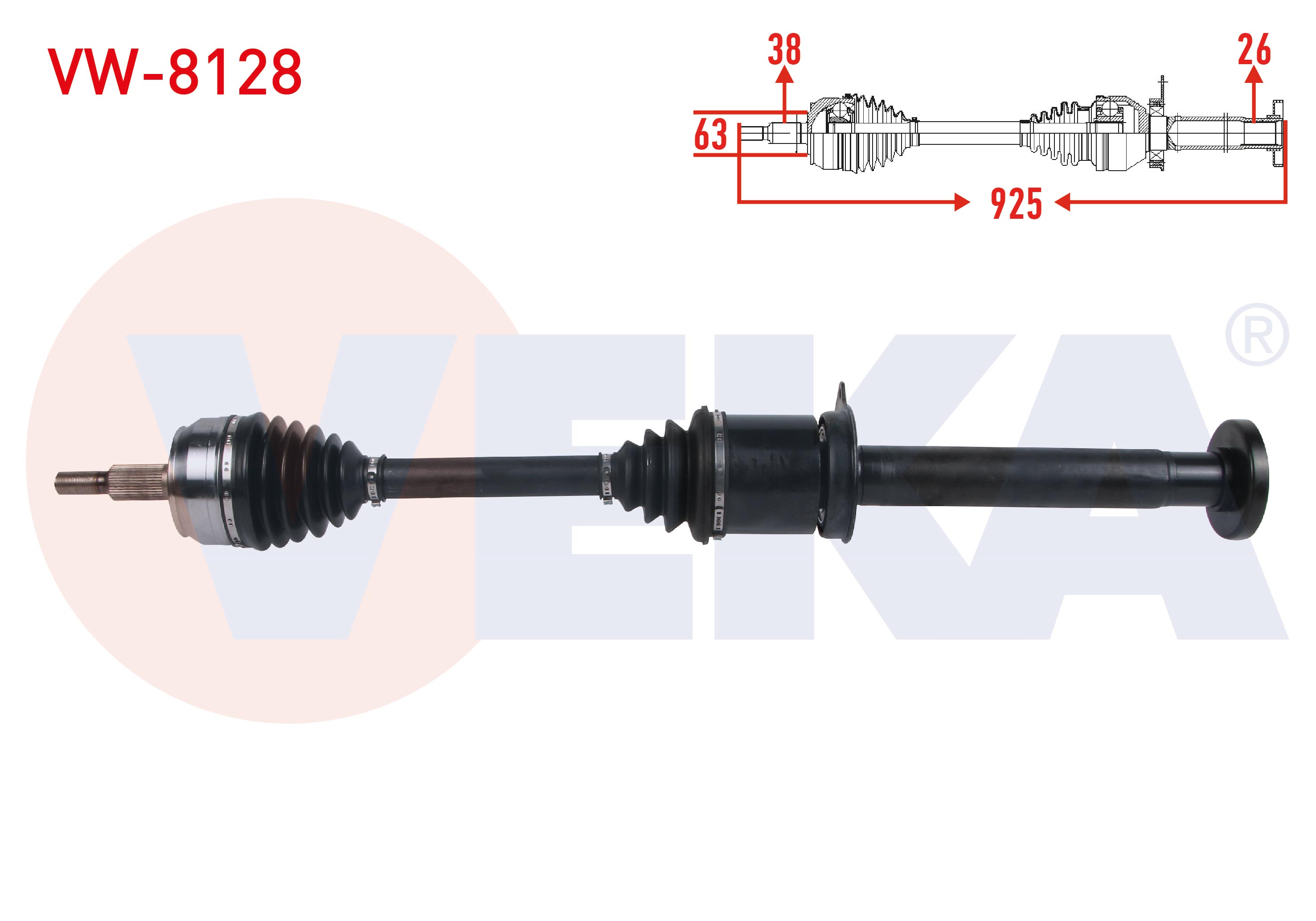 VEKA VW-8128 | Komple Aks Sağ On Uzunluk 925mm Volkswagen Transporter V (7Ha,7Hh,7Ea,7Eh) 2.5 TDI A-T 2003-2011