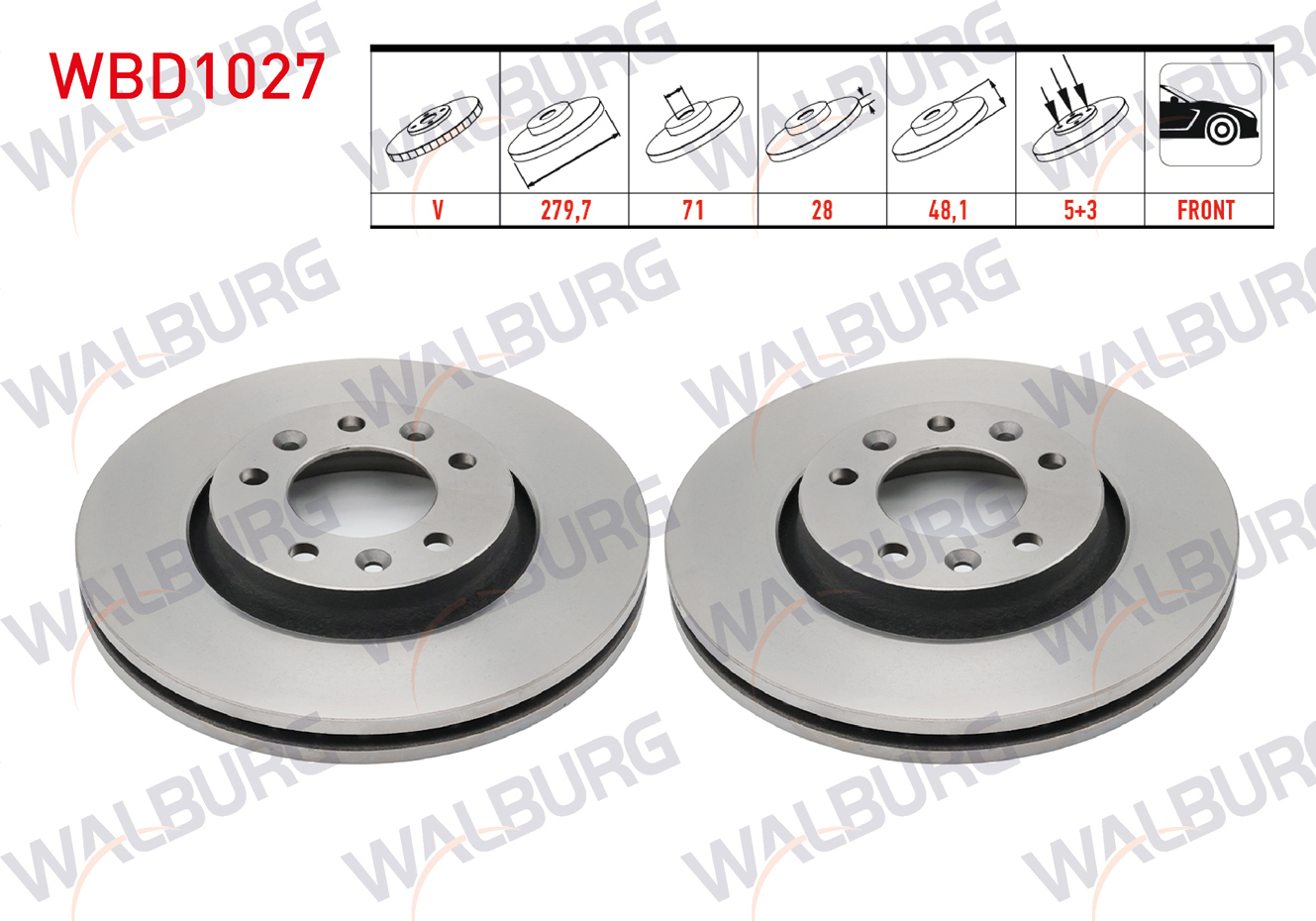 WALBURG WBD1027 | Fren Diski Ön Havalı 5 Bjn 279,7X28x71x48,1 Fiat Scudo 1.6 Mjt 90 Hp 2007-/ Peugeot Expert 1.6 HDI 90 Hp-2.0 HDI 2007-/ Citroen Jumpy II 1.6 HDI 2006-| 2 Adet