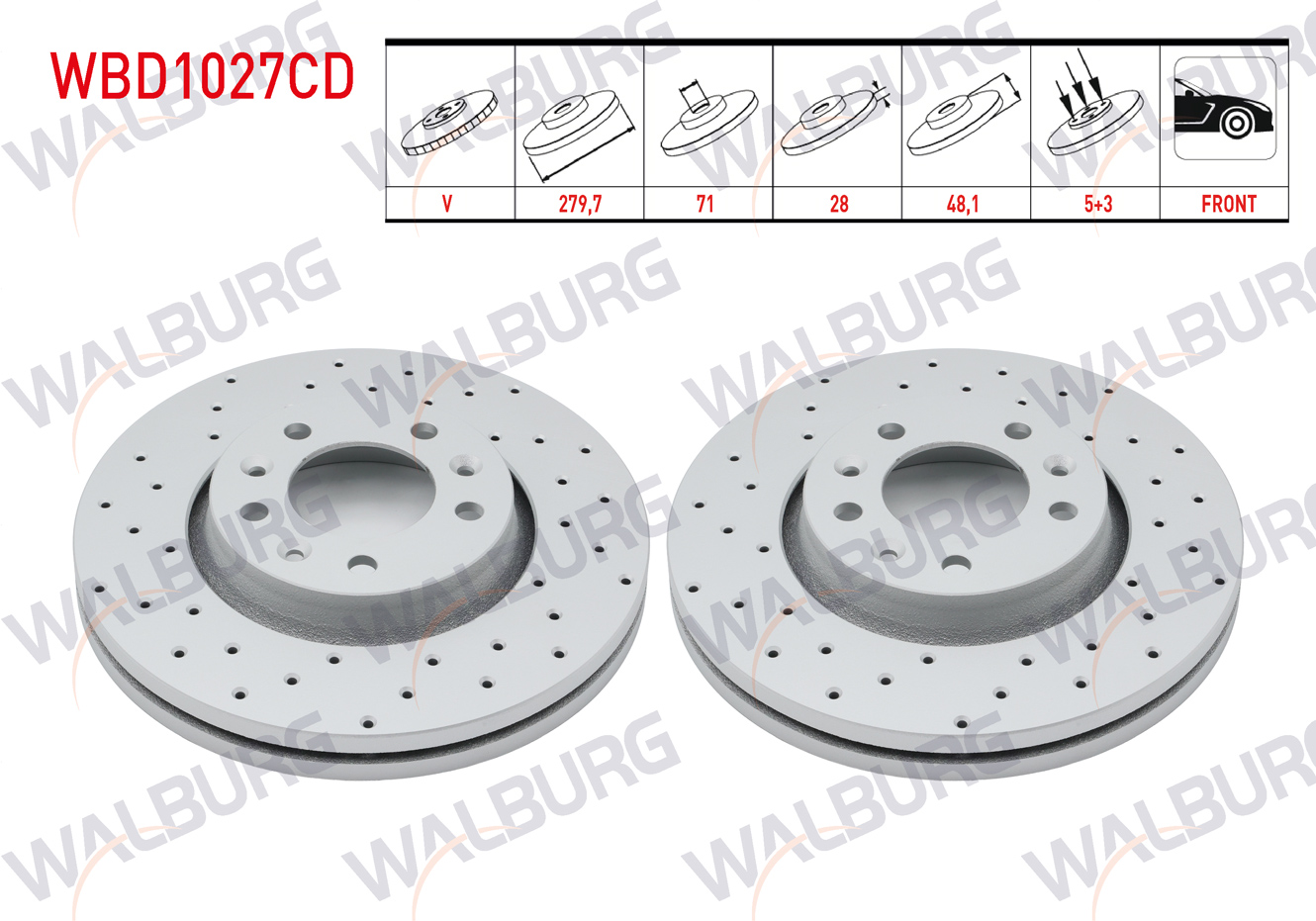 WALBURG WBD1027CD | Fren Diski Ön Havalı Kaplamalı Performans Delikli 5 Bjn 279,7X28x71x48,1 Fiat Scudo 1.6 Mjt 90 Hp 2007-/ Peugeot Expert 1.6 HDI 90 Hp-2.0 HDI 2007-/ Citroen Jumpy II 1.6 HDI 2006-| 2 Adet