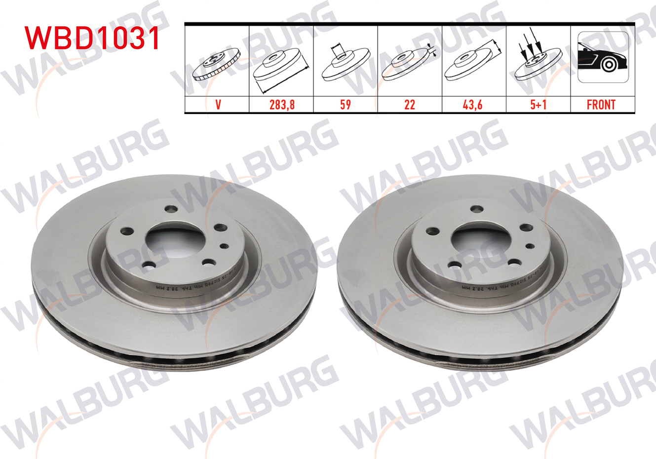 WALBURG WBD1031 | Fren Diski Ön Havalı 5 Bjn 283,8X22x59x43,6 Fiat Doblo 1.3 Mjt-1.6 Mjt 2010-/ Fiorino 1.3 Mjt Euro 5 2013-/ Alfa Romeo 147 1.6 2001-2010 / Opel Combo D 1.6 CDTI 2012-| 2 Adet Takım