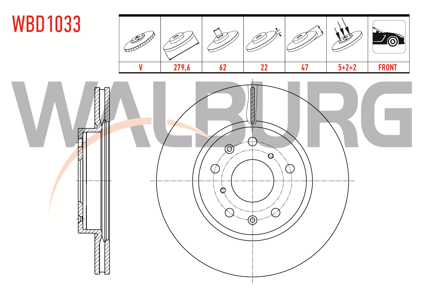 WALBURG WBD1033 | Fren Diski Ön Havalı 5 Bjn 279,6X22x62x47 Suzuki Sx4 1.6 2006-2013 / Sx4 1.5 Vvt-I 5 2006-2013 / Fiat Sedıcı 1.6 16V 2006-| 2 Adet