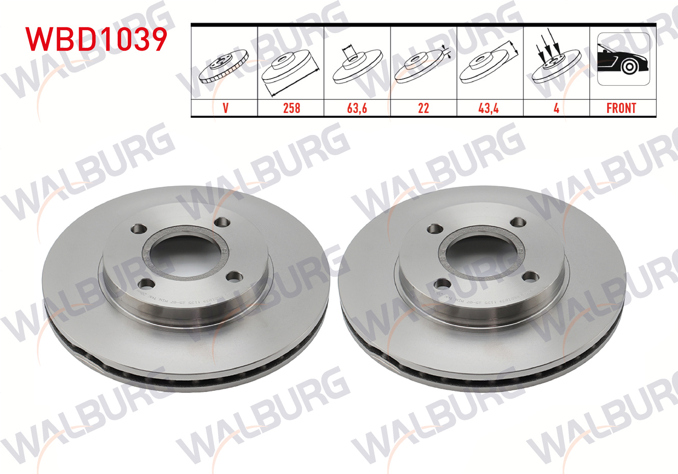 WALBURG WBD1039 | Fren Diski Ön Havalı 4 Bjn 258X22x63,6X43,4 Ford Focus 1.6İ 16V-1.8 TDCI-2.0 16V 1998-2004 / Fiesta V 1.4 TDCI-1.4İ 16V-1.6İ 16V-1.6 TDCI 2001-2008 / Fusion 1.4 TDCI 2002-2010 | 2 Adet Takım
