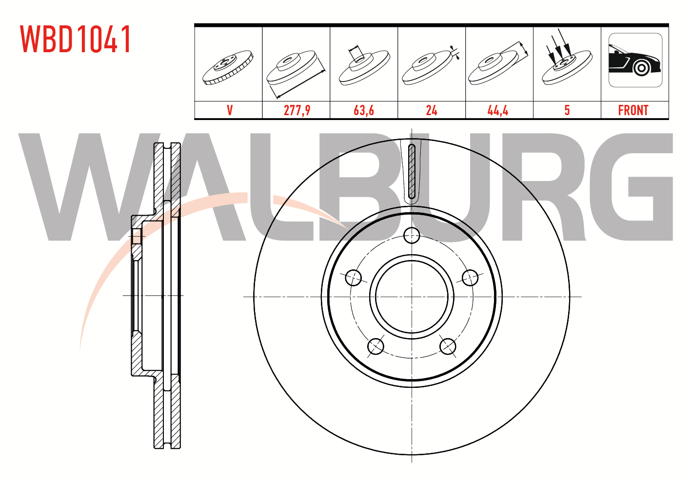 WALBURG WBD1041 | Fren Diski Ön Havalı 5 Bjn 277,9X24x63,6X44,4 Ford Transit Connect 1.8 TDCI 2002-2013 / Tourneo Connect 1.8 TDCI 2002-2013 | 2 Adet