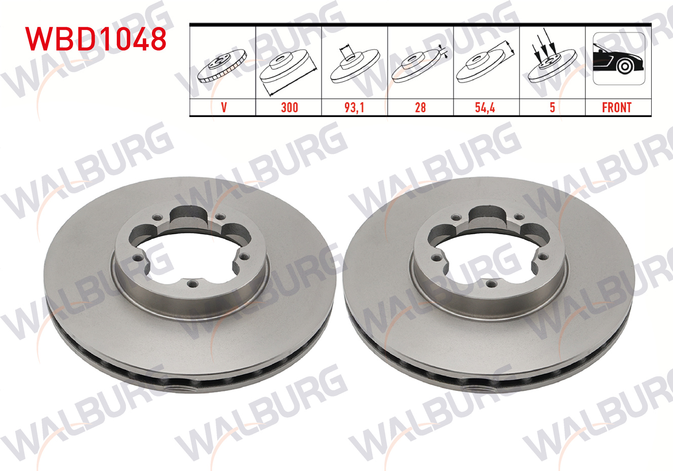 WALBURG WBD1048 | Fren Diski Ön Havalı 5 Bjn 300X28x93x54,4 Ford Transit 2.2 TDCI Arkadan Itıs 2006-2014 / Transit 2.4 TDCI 2006-2014 / Transit 2.2 TDCI 2006-2014 / Transit 3.2 TDCI 2006-2014 | 2 Adet