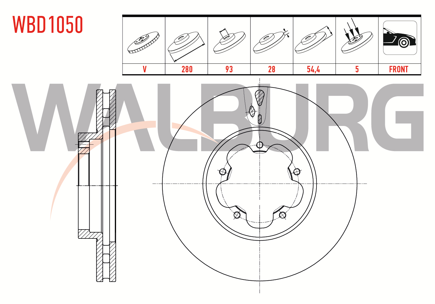 WALBURG WBD1050 | Fren Diski Ön Havalı 5 Bjn 280X28x93x54,4 Ford Transit (V347) 2.2 TDCI Onden Cekıs 2006-2014 / Transit (V347) 2.4 TDCI Onden Cekıs 2006-2014 | 2 Adet