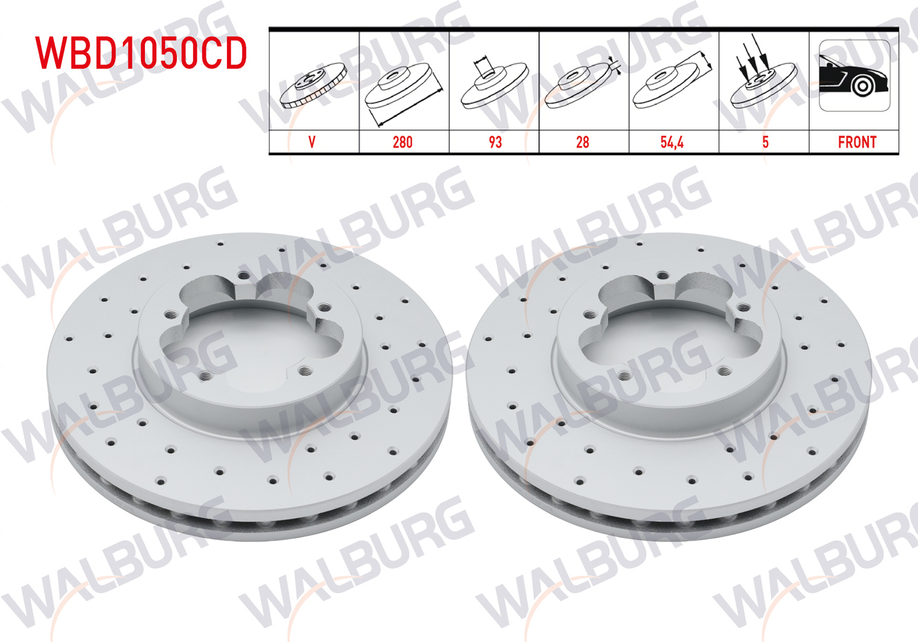 WALBURG WBD1050CD | Fren Diski Ön Havalı Kaplamalı Performans Delikli 5 Bjn 280X28x93x54,4 Ford Transit (V347) 2.2 TDCI Onden Cekıs 2006-2014 / Transit (V347) 2.4 TDCI Onden Cekıs 2006-2014 | 2 Adet
