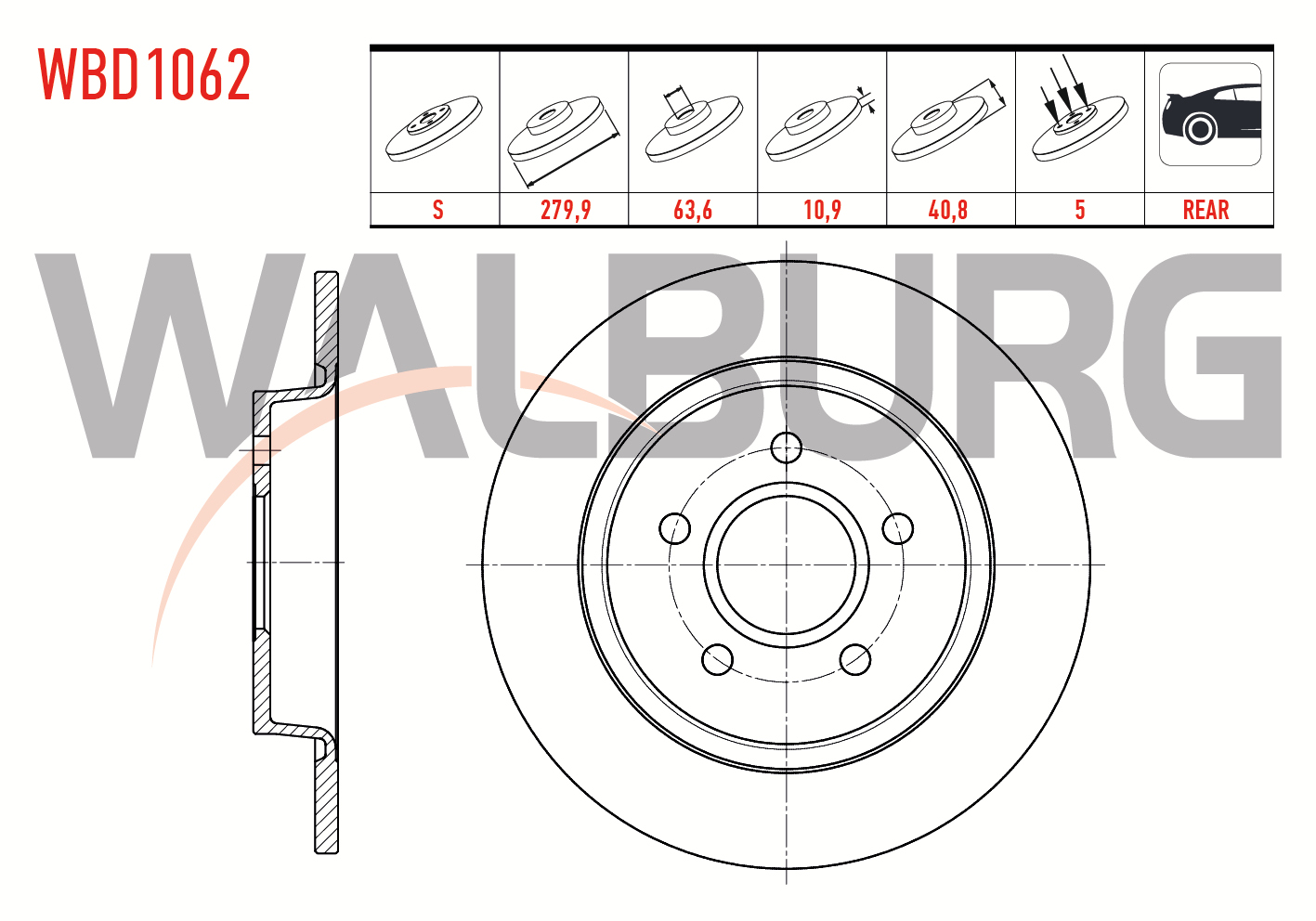 WALBURG WBD1062 | Fren Diski Arka Düz 5 Bjn 279,9X10,9X63,6X40,8 Ford C-Max I 1.6 TDCI-1.6İ-1.4İ-2.0İ 2007-2011 / Focus II (Da) 1.4İ-1.6İ-1.8İ-1.6 TDCI 2004-2011 / Volvo S40 II 1.6İ-2.0İ 2004-| 2 Adet