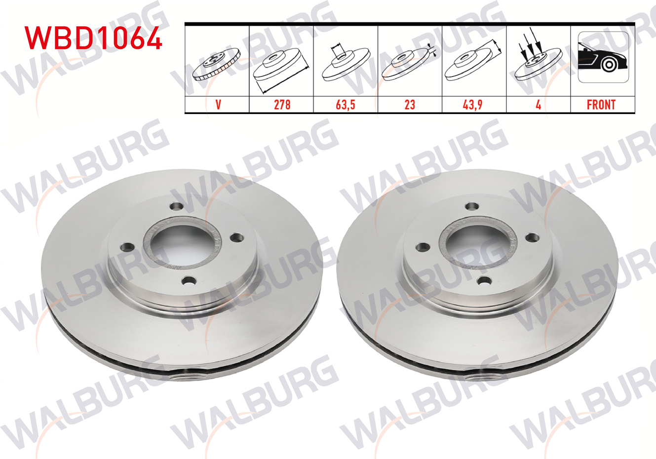 WALBURG WBD1064 | Fren Diski Ön Havalı 4 Bjn 278X23x63,5X44 Ford Transit Courıer 1.5 TDCI-1.6 TDCI 2014-/ B-Max 1.5 TDCI-1.6 TDCI-1.4İ-2012-| 2 Adet
