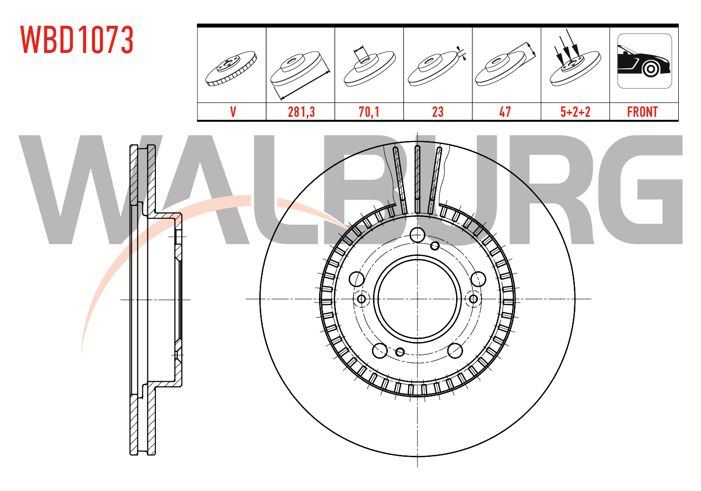 WALBURG WBD1073 | Fren Diski Ön Havalı 5 Bjn 281,3X23x70,1X47 Honda Cr-V I 2.0İ 16V 1995-2002 / Hr-V (Gh) 1.6 1999-| 2 Adet