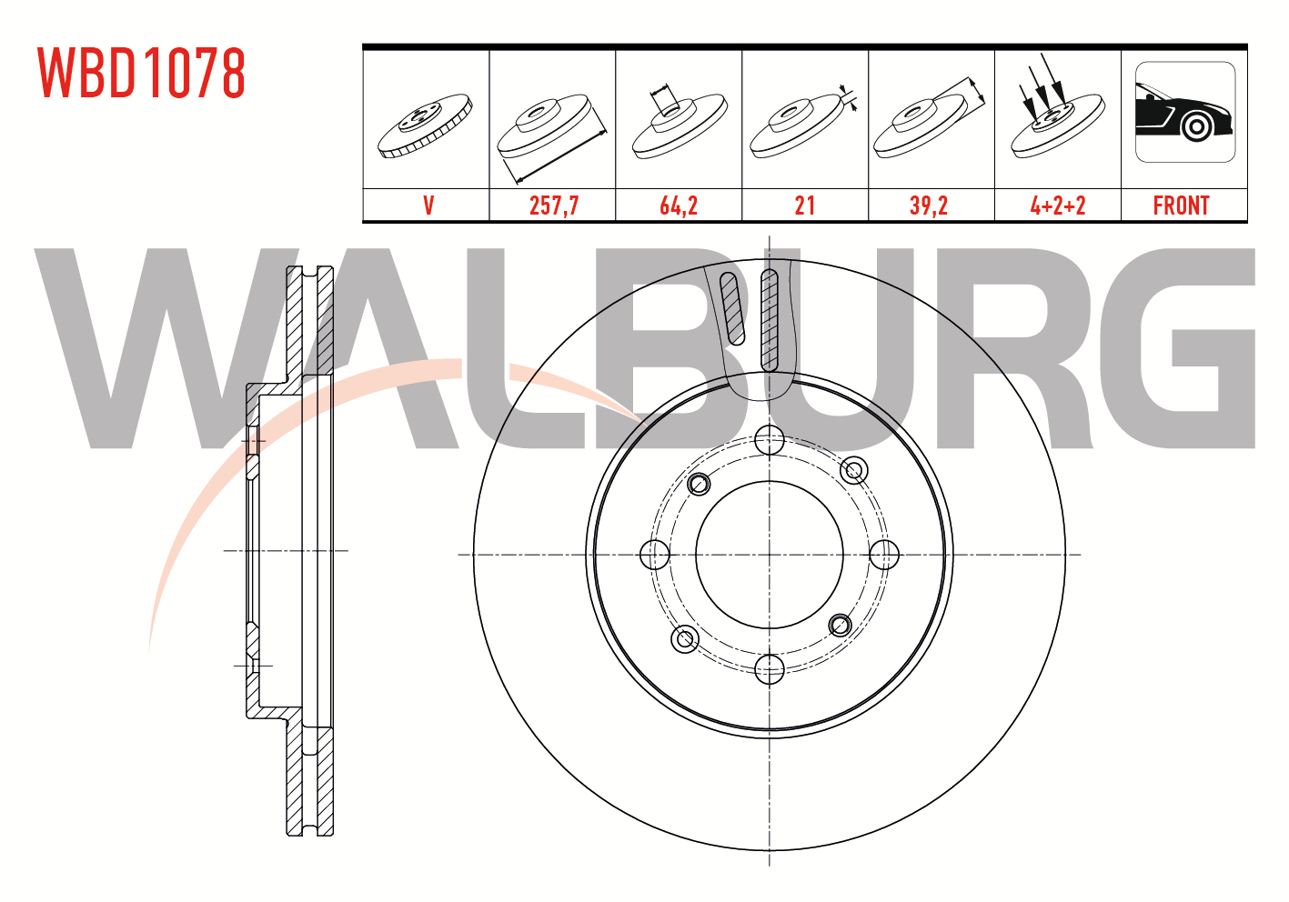 WALBURG WBD1078 | Fren Diski Ön Havalı 4 Bjn 257,7X21x64,2X39,2 Honda Jazz II (Gd) 1.4İ 2002-2004 | 2 Adet Takım