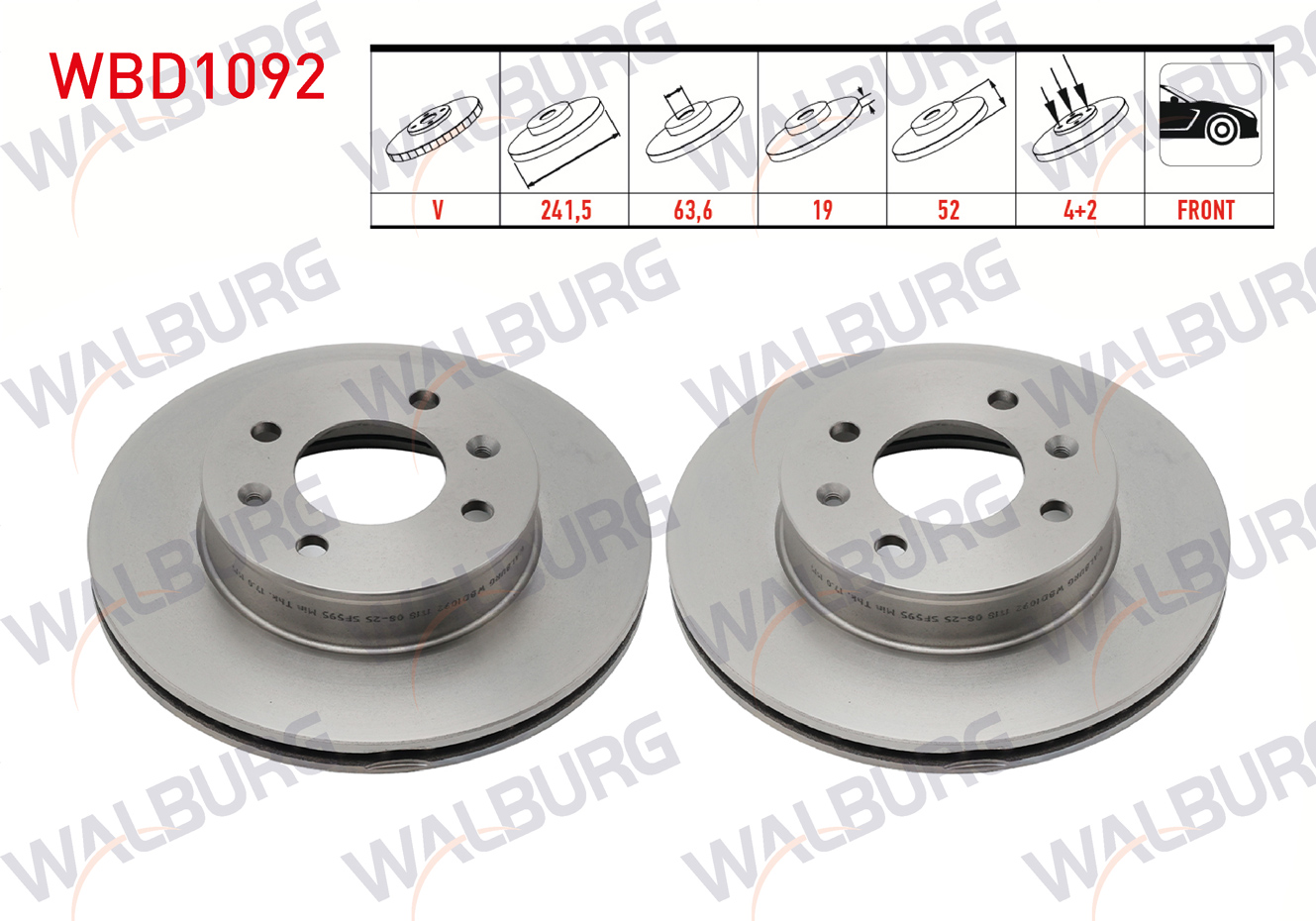 WALBURG WBD1092 | Fren Diski Ön Havalı 4 Bjn 241,5X19x63,6X52 Hyundai Accent Admıre 1.3-1.6-1.5 CRDI 2003-2006 / Accent II (Lc) 1.3-1.5İ-1.6İ 2000-2005 / Accent Mılenıum 1.3-1.5-1.5 CRDI 2000-2003 | 2 Adet Takım