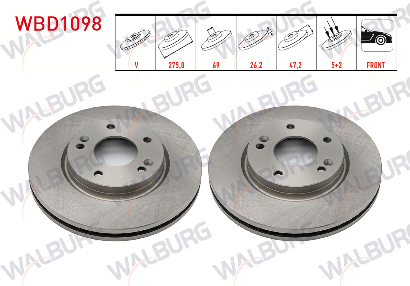 WALBURG WBD1098 | Fren Diski Ön Havalı 5 Bjn 275X26,2X69x47,2 Hyundai Santa Fe 2.0 CRDI-2.0İ-2.4İ 16V-2.7İ V6 2001-2006 / Trajet 2.0 CRDI-2001-2006 | 2 Adet