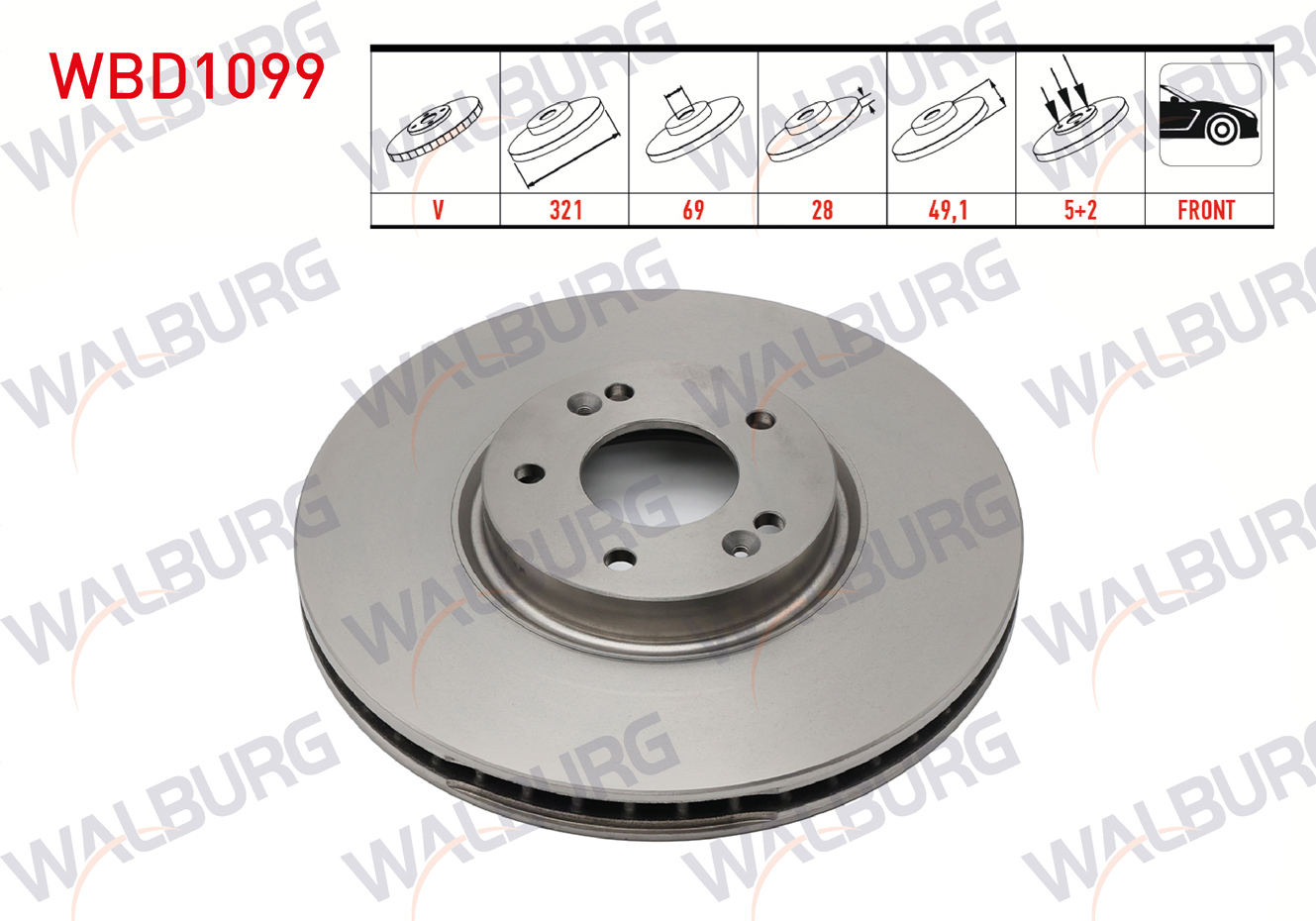 WALBURG WBD1099 | Fren Diski Ön Havalı 5 Bjn 321X28x69x49,1 Hyundai Santa Fe (Cm) 2.2 CRDI 2006-2012 / Santa Fe (Cm) 2.7İ V6 2006-2012 | 2 Adet