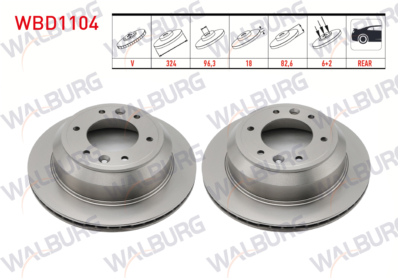 WALBURG WBD1104 | Fren Diski Arka Havalı 6 Bjn 324X18x96,3X82,6 Hyundai H1 2.5 CRDI 2008-| 2 Adet