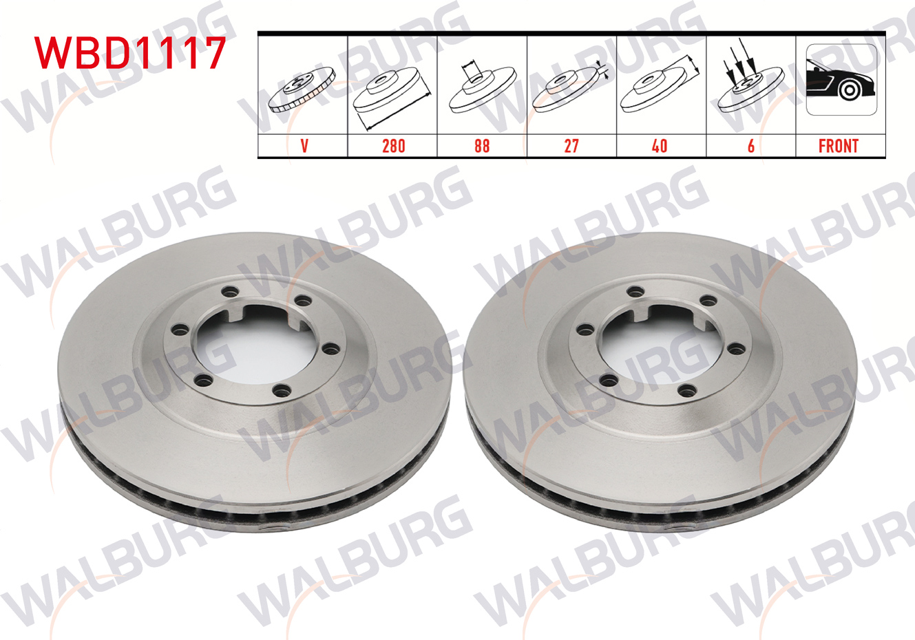 WALBURG WBD1117 | Fren Diski Ön Havalı 6 Bjn 280X27x88x40 Isuzu D-Max (8Dh) 2.5 D 4X4 2002-2012 / D-Max (8Dh) 3.0 D A-T 4X4 2002-2012 / D-Max (8Dh) 2.5 Dıtd 4X4 2002-2012 | 2 Adet Takım