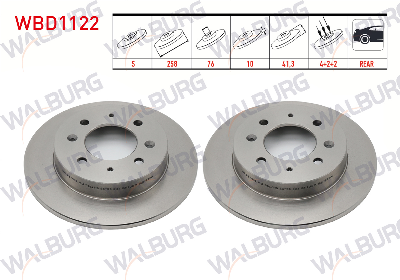 WALBURG WBD1122 | Fren Diski Arka Düz 4 Bjn 258X10x76x41,3 Kia Cerato (Ld) 1.5 CRDI 2004-2012 / Cerato (Ld) 1.6İ 2004-2012 | 2 Adet