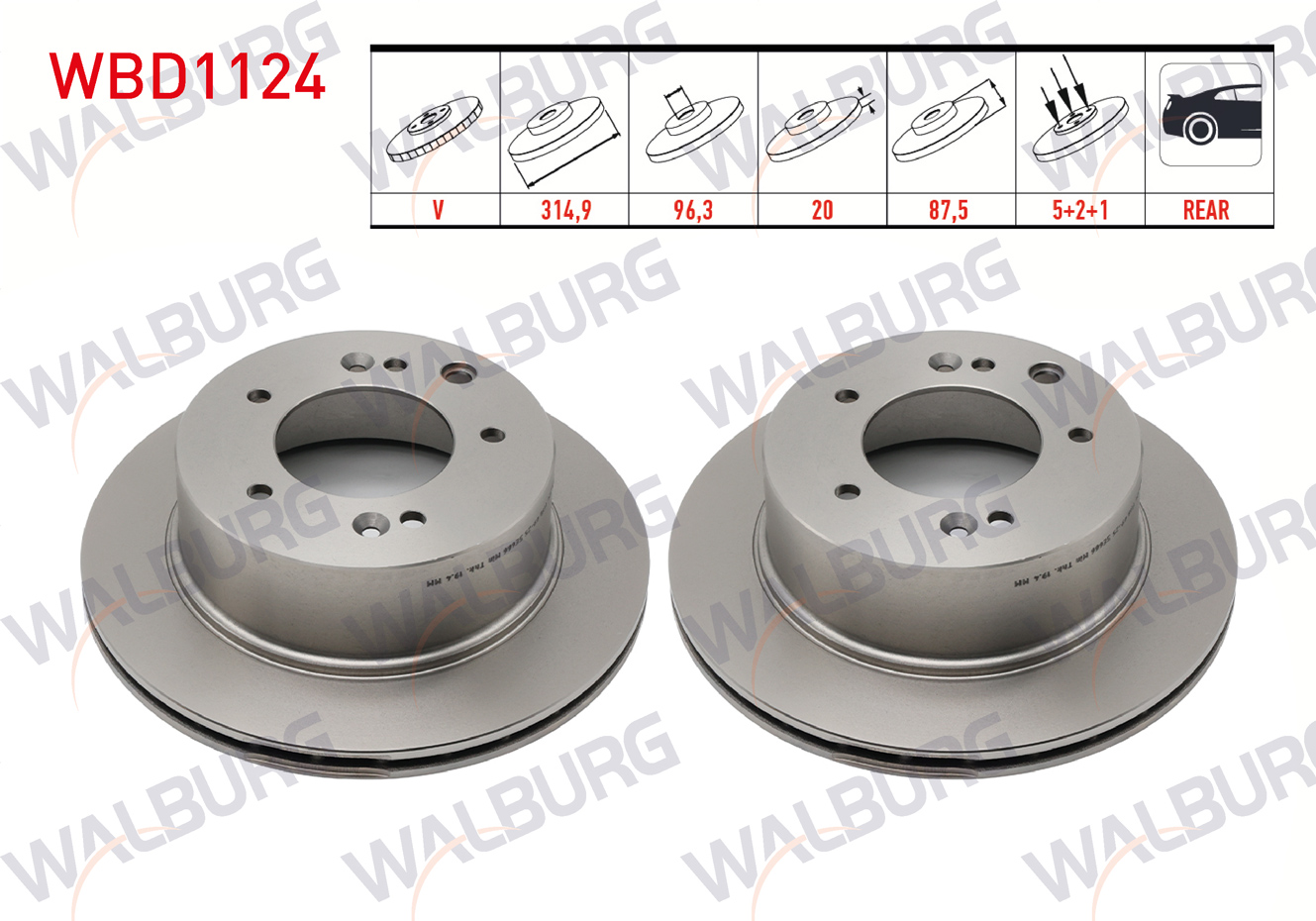 WALBURG WBD1124 | Fren Diski Arka Havalı 5 Bjn315x20x96,2X87,5 Kia Sorento I (Jc) 2.5 CRDI 2002-2009 | 2 Adet