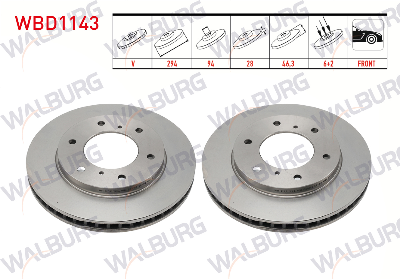 WALBURG WBD1143 | Fren Diski Ön Havalı 6 Bjn 294X28x94x46,3 Mitsubishi L 200 (Ka_T, Kb_T) 2.5 2005-2015 / L 200 (Kj_, Kk_, Kl_) 2.2 2.4 2.5 Dı-D 4Wd 2014-/ Fiat Fullback Pick-Up 4X4 2016-| 2 Adet Takım