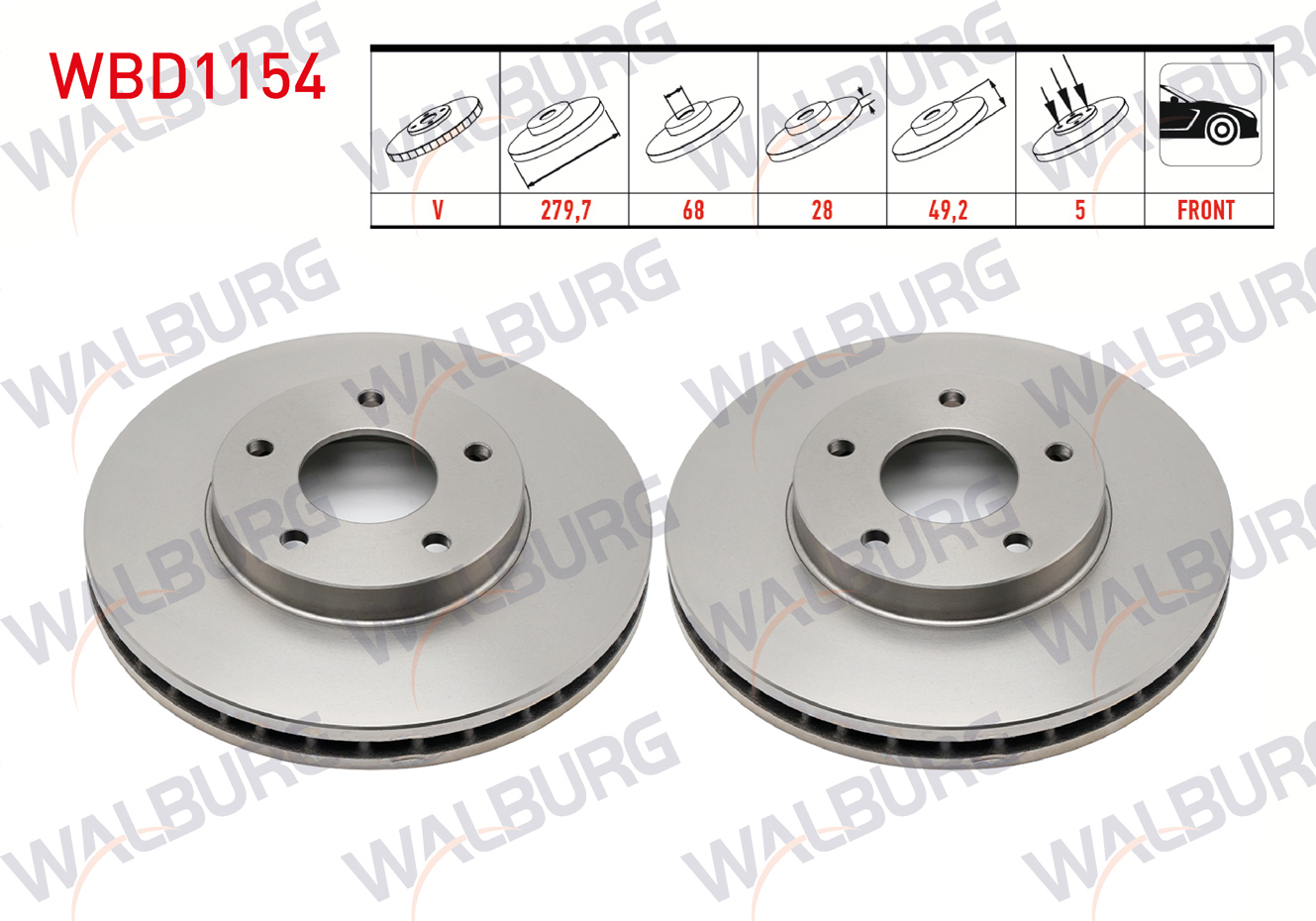 WALBURG WBD1154 | Fren Diski Ön Havalı 5 Bjn 279,7X28x68x49,2 Nissan Primera (P12) 1.6İ-2.0İ 2002-/ X-Traıl (T30) 2.0İ 2001-2007 / X-Traıl (T30) 2.2 Dı 2001-2007 | 2 Adet Takım