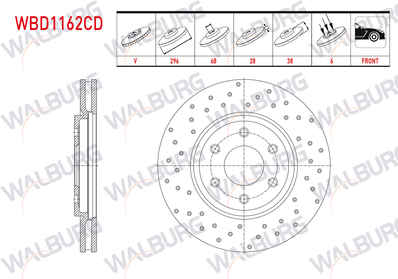 WALBURG WBD1162CD | Fren Diski Ön Havalı Kaplamalı Performans Delikli 6 Bjn 296X28x68x38 Nissan Navara (D40) 2.5 DCI 2005-2015 / Pathfinder (R51) 2.5 DCI 2005-| 2 Adet