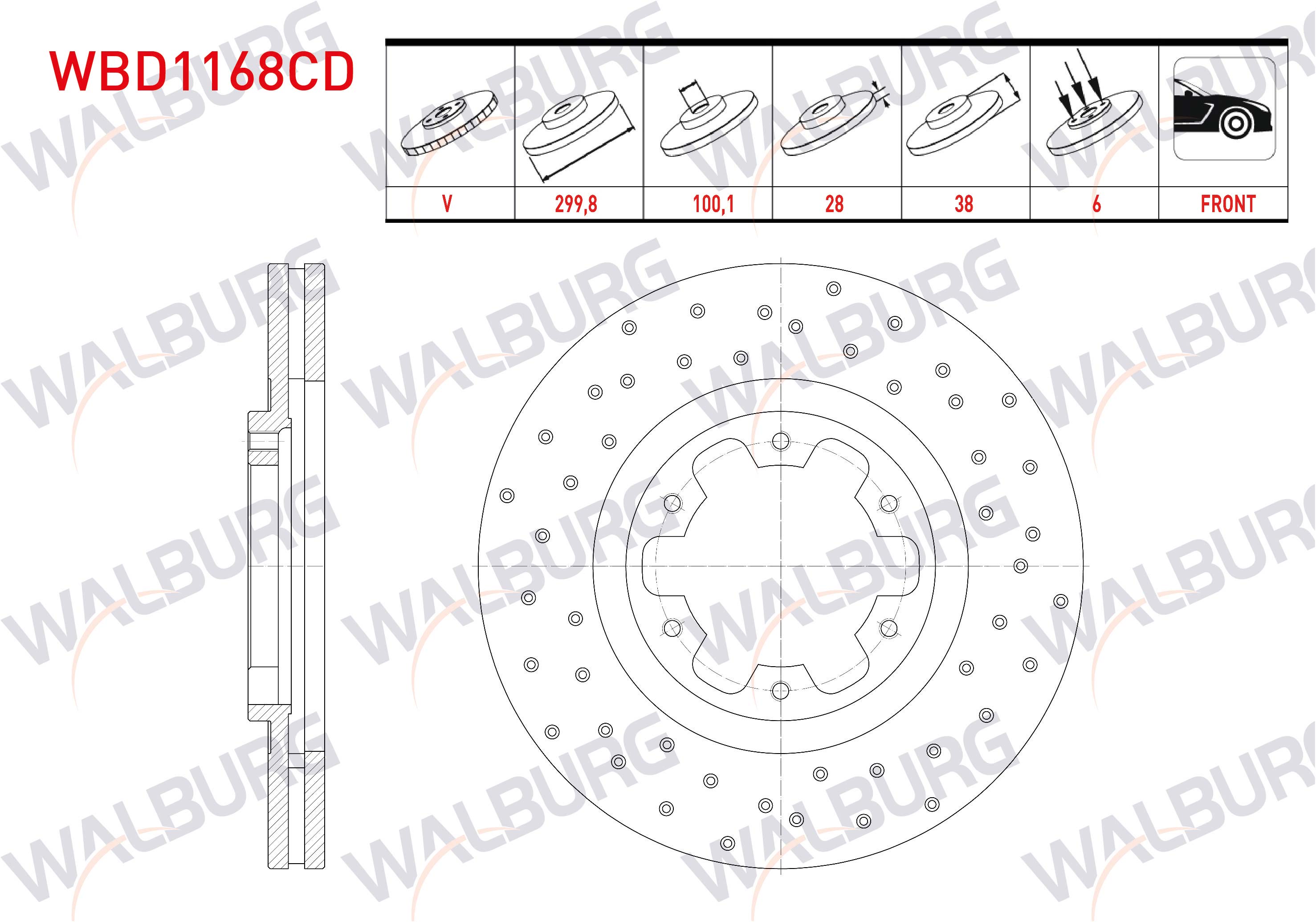 WALBURG WBD1168CD | Fren Diski Ön Havalı Kaplamalı Performans Delikli 6 Bjn 299,8X28x100,1X38 Nissan Pick Up Np300 Skystar 2.5 DCI 4X4 2008-/ Pick Up Skystar 2.4İ 4X4 2002-2005 | 2 Adet