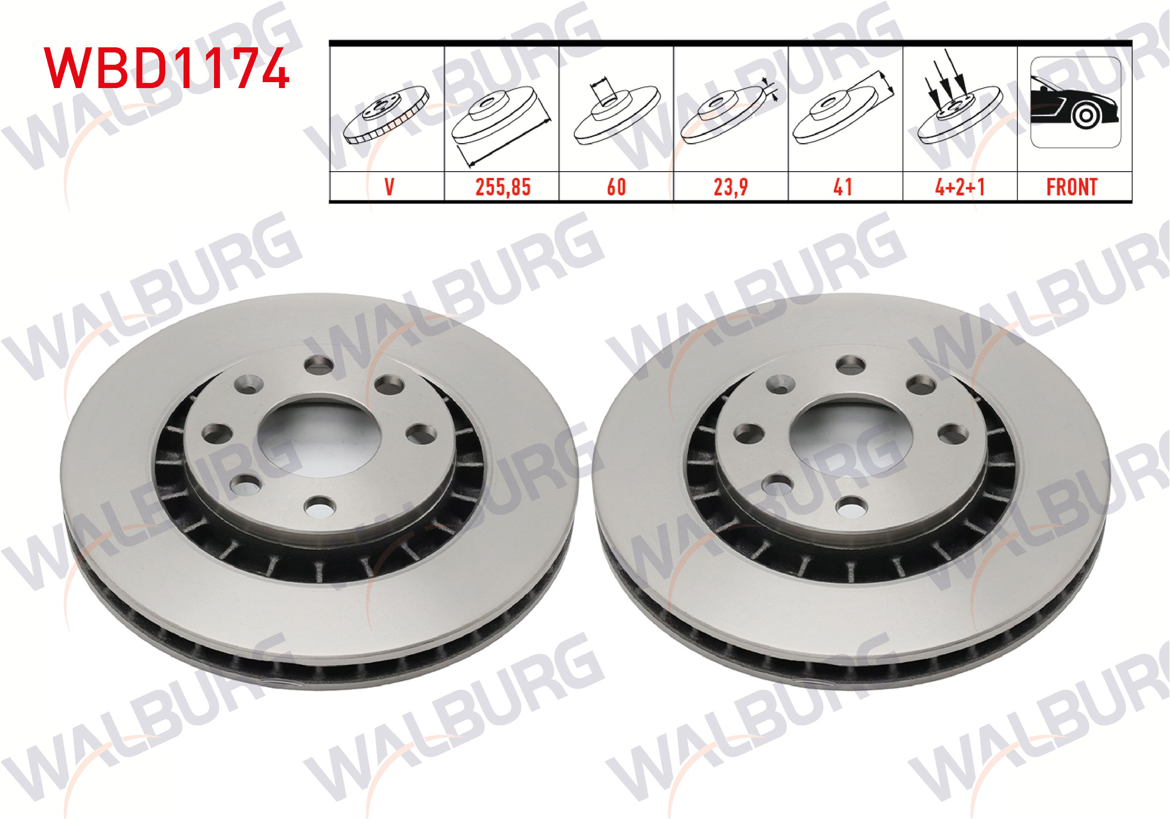 WALBURG WBD1174 | Fren Diski Ön Havalı 4 Bjn 255,85X23,9X60x41 Opel Vectra A 2.0 1988-1995 / Vectra B 1.6İ-2.0İ 1995-2003 / Astra F 1.4İ-1.6İ 1991-1998 / Astra F Classic 1.4İ-1.6İ 1998-2002 / Corsa C 1.4 2000-2006 | 2 Adet Takım
