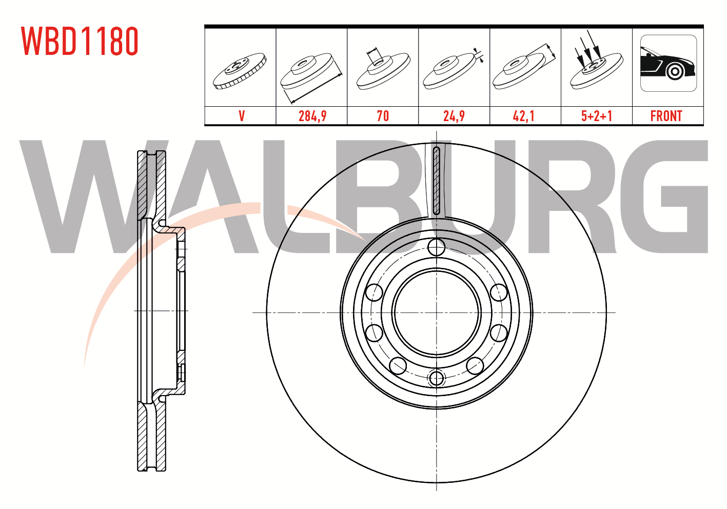 WALBURG WBD1180 | Fren Diski Ön Havalı 5 Bjn 284,7X24,9X70x42,1 Opel Vectra C 1.6 16V 2002-2008 / Vectra C 1.8 16V 2002-2008 / Vectra C 1.9 CDTI 2002-2008 / Vectra C 2.2 16V 2002-2008 / | 2 Adet Takım