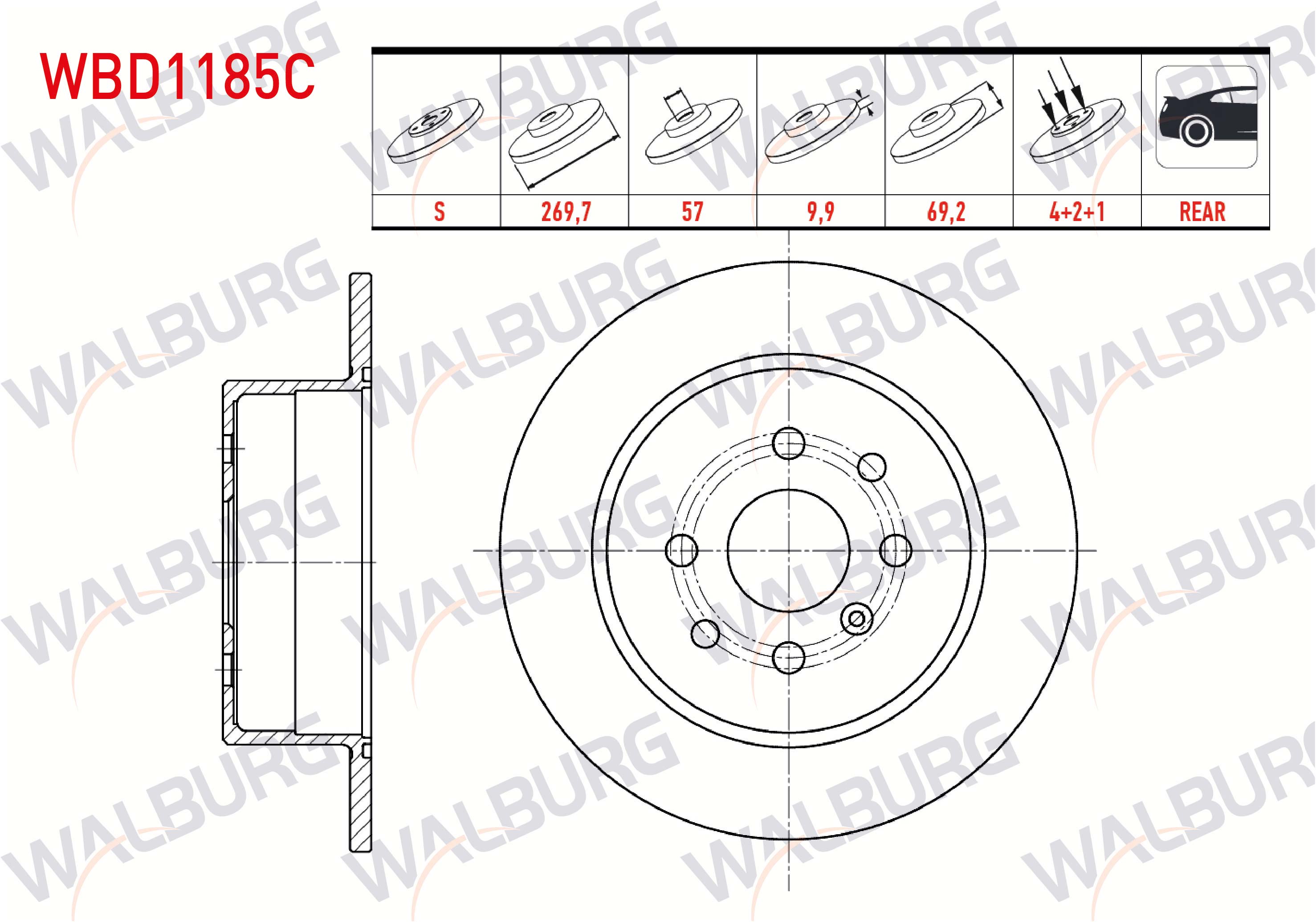 WALBURG WBD1185C | Fren Diski Arka Düz Kaplamalı 4 Bjn 269,7X9,9X57x69,2 Opel Vectra B 1.6İ 1995-2003 / Vectra B 1.8İ 1995-2003 / Vectra B 2.0 Dtı 1995-2003 / Vectra B 1.7 TD 1995-2003 / Vectra B 2.0 Dı 1995-2003 | 2 Adet
