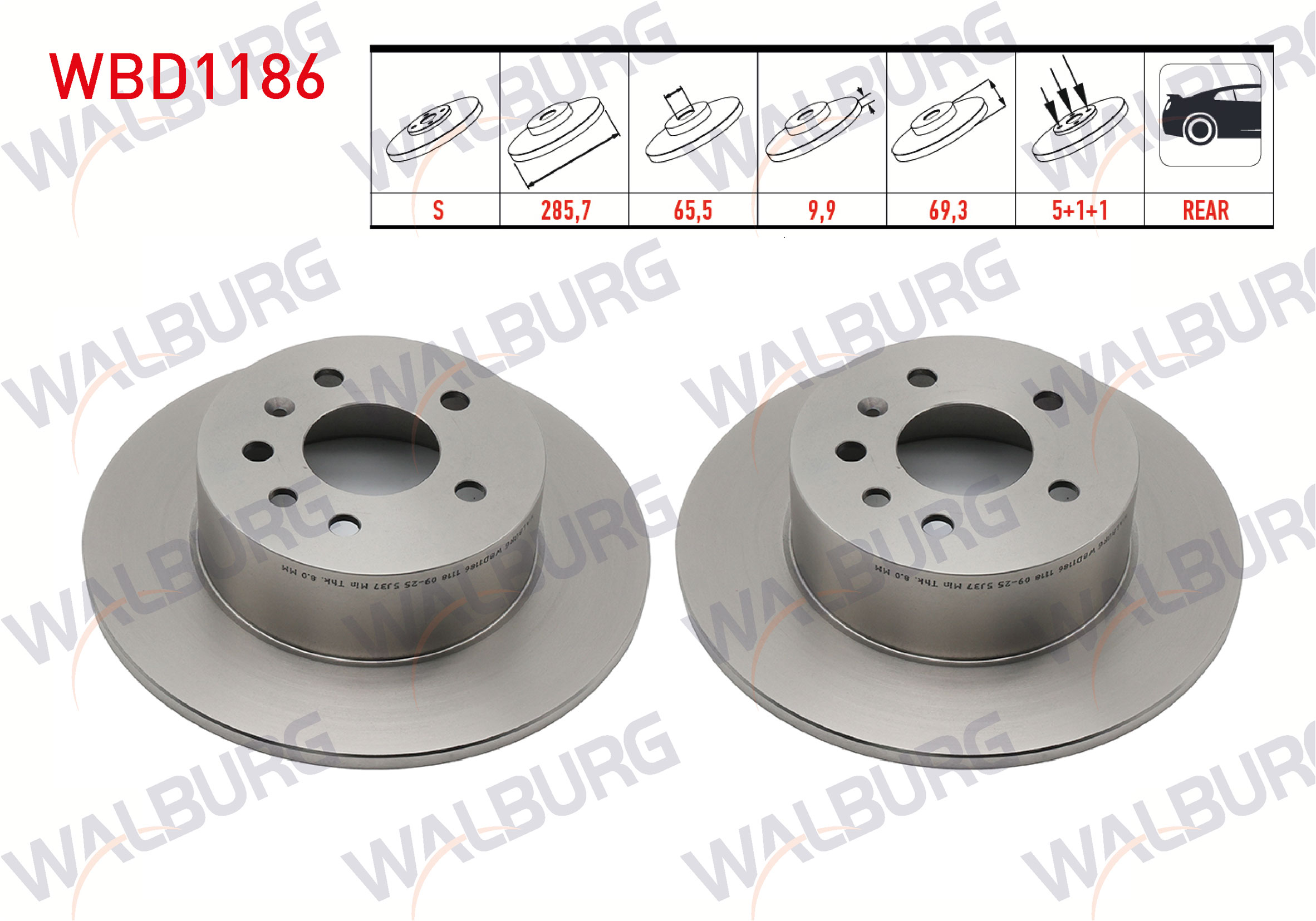 WALBURG WBD1186 | Fren Diski Arka Düz 5 Bjn 285,7X9,9X65,5X69,3 Opel Vectra B 2.0İ 1995-2003 / Vectra B 2.5 V6 1995-2003 | 2 Adet