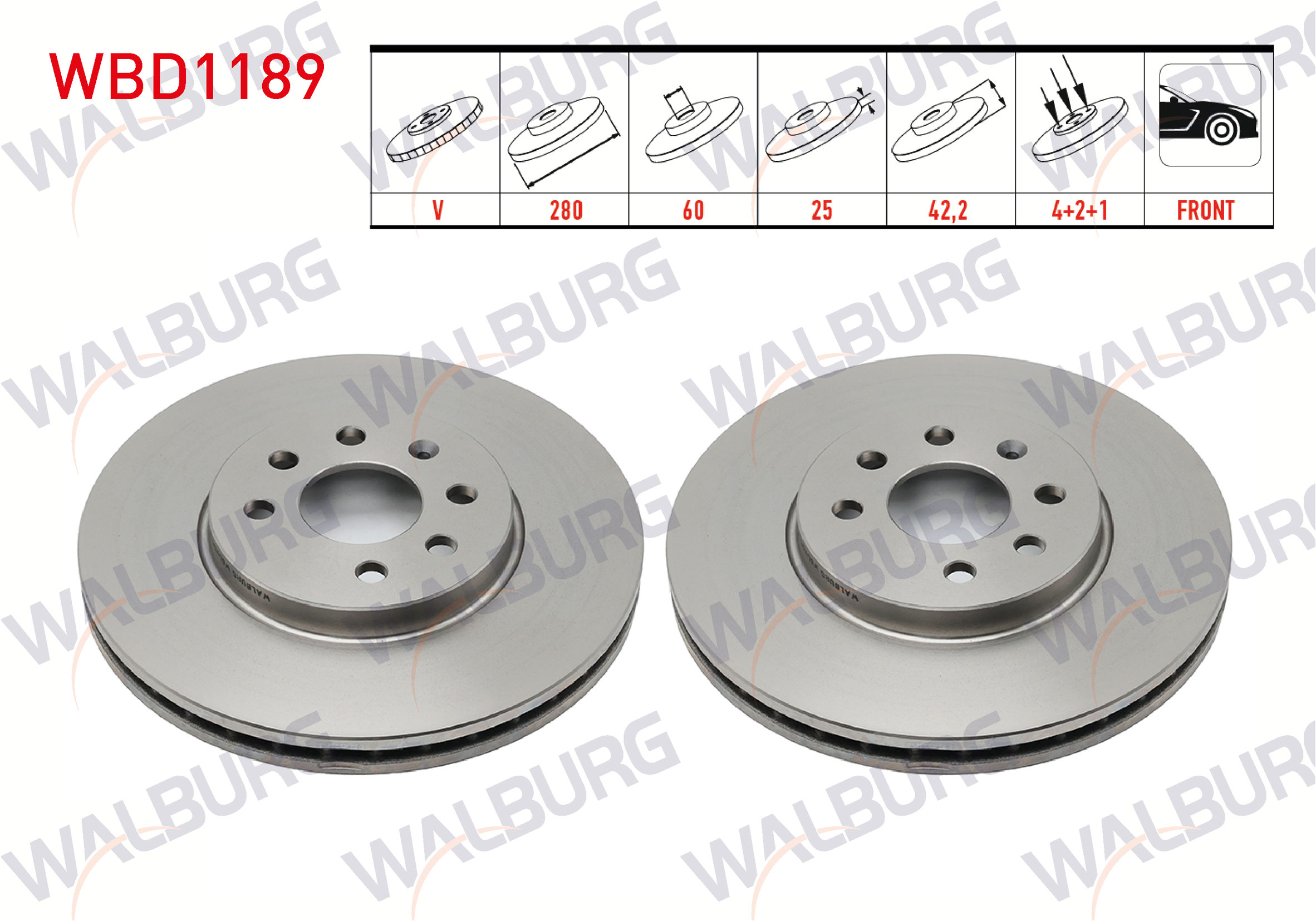 WALBURG WBD1189 | Fren Diski Ön Havalı 4 Bjn 280X25x60x42,2 Opel Combo C 1.3 CDTI-1.7 CDTI-2001-2006 / Meriva A 1.6-1.3 CDTI 2003-2010 / Astra H 1.4İ-1.6İ-1.3 CDTI 2004-2010 | 2 Adet