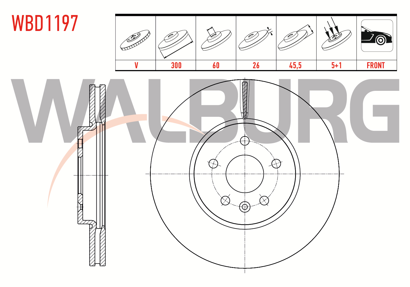 WALBURG WBD1197 | Fren Diski Ön Havalı 5 Bjn 300X26x60x45,5 Opel Mokka 1.6 CDTI-1.6 CDTI-1.6-1.4-2012-/ Chevrolet Trax 1.4-1.6 2012-2014 | 2 Adet