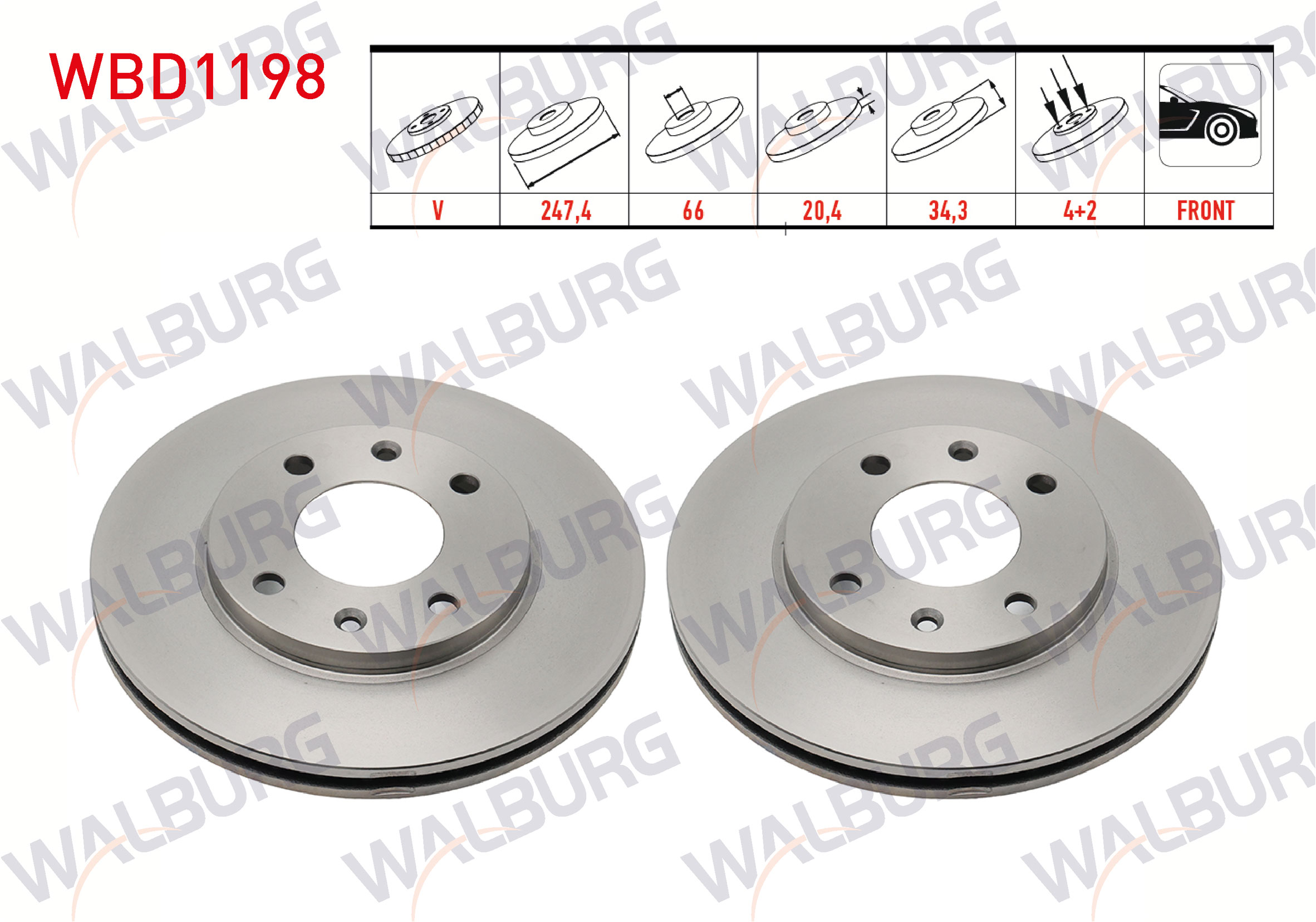 WALBURG WBD1198 | Fren Diski Ön Havalı 4 Bjn 247X20,4X66x34,3 206 1.4 HDI-1.4İ 16V-1.6İ 16V 1998-2006 / Xsara 1.6-1.8 1997-2005 / 306 1.6İ-1.8İ 1993-2002 / Saxo 1.5 D-1.6 1996-2004 / 106 II 1.6İ 1996-2002 | 2 Adet Takım