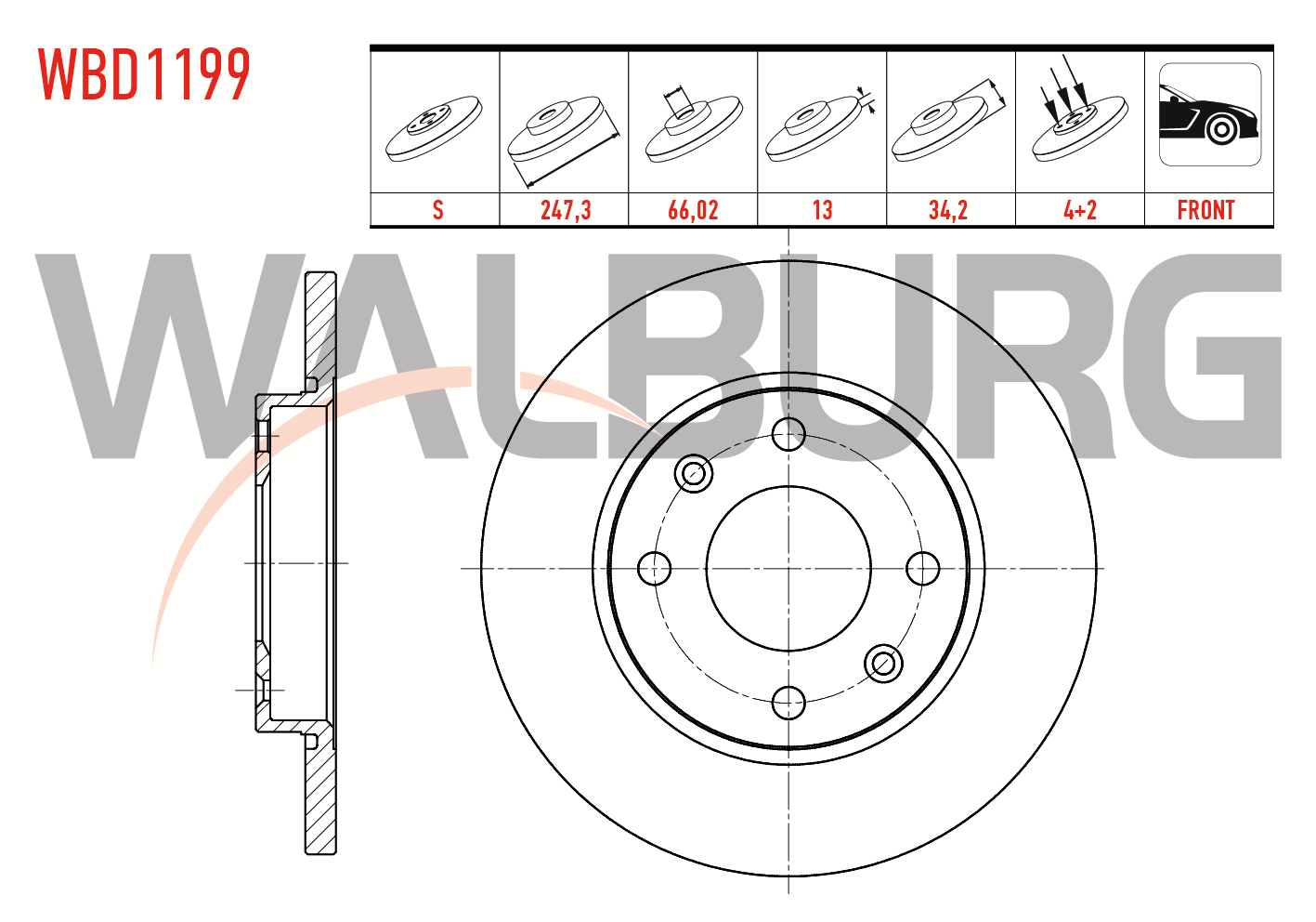 WALBURG WBD1199 | Fren Diski Ön Düz 4 Bjn 247,3X13x66,02X34,2 206 (2A / C) 1.4 HDI-1.4İ 16V 1998-2006 / Xsara 1.4 1997-2005 / Xsara 1.6 1997-2005 / Xsara 1.8 1997-2005 / 306 1.4İ 1993-2002 / 306 1.6İ 1993-2002 | 2 Adet