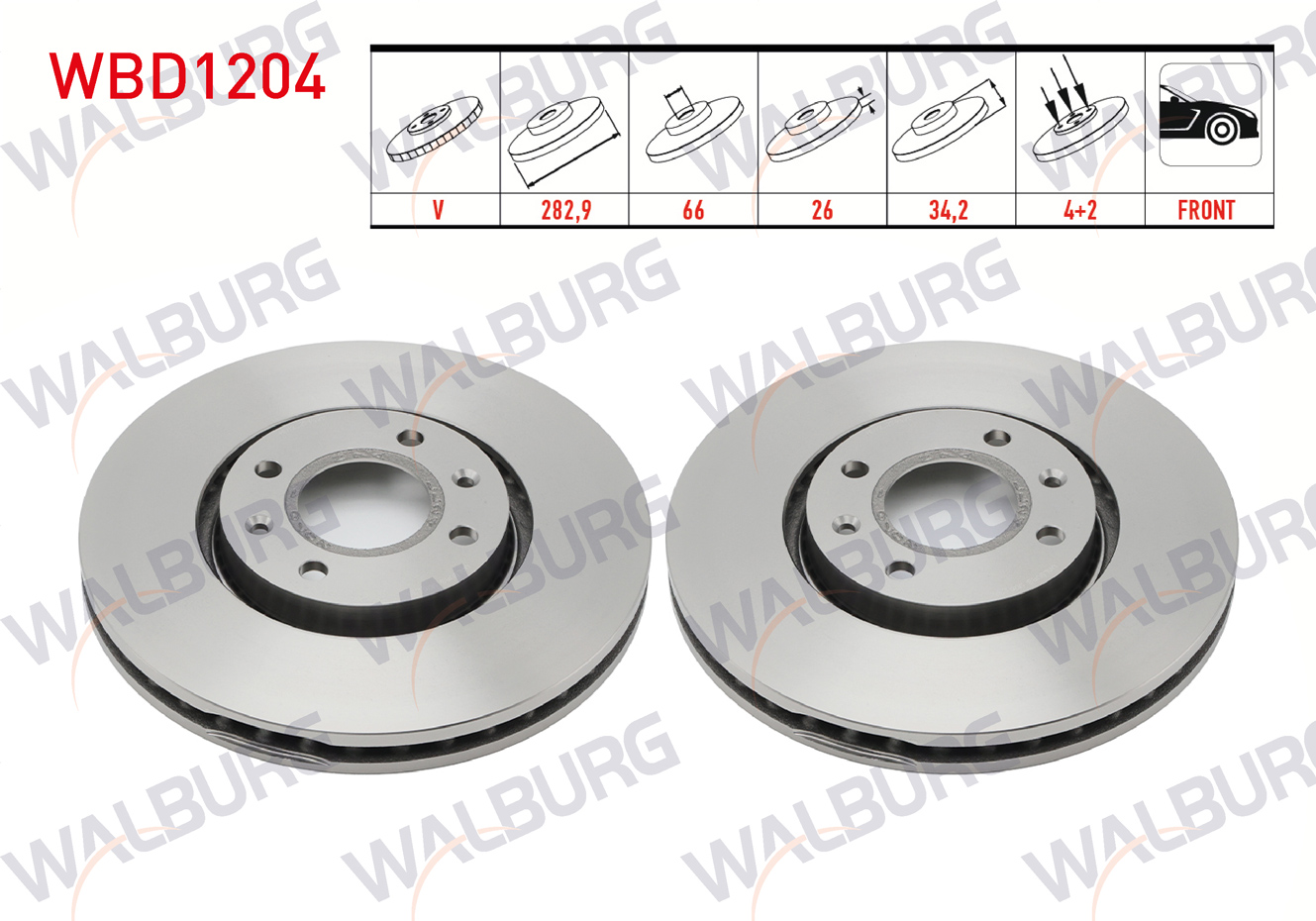 WALBURG WBD1204 | Fren Diski Ön Havalı 4 Bjn 282,9X26x66x34,2 Peugeot Partner-Tepee 1.6 HDI 08-/ Berlingo 1.6 HDI 08-/ 207 1.6 HDI-1.6İ 16V-1.4 HDI 06-12 / C4 1.6-1.6 HDI 04-09 / C4 Picasso 1.6 HDI 06-13 / Opel Corsa F 19-| 2 Adet