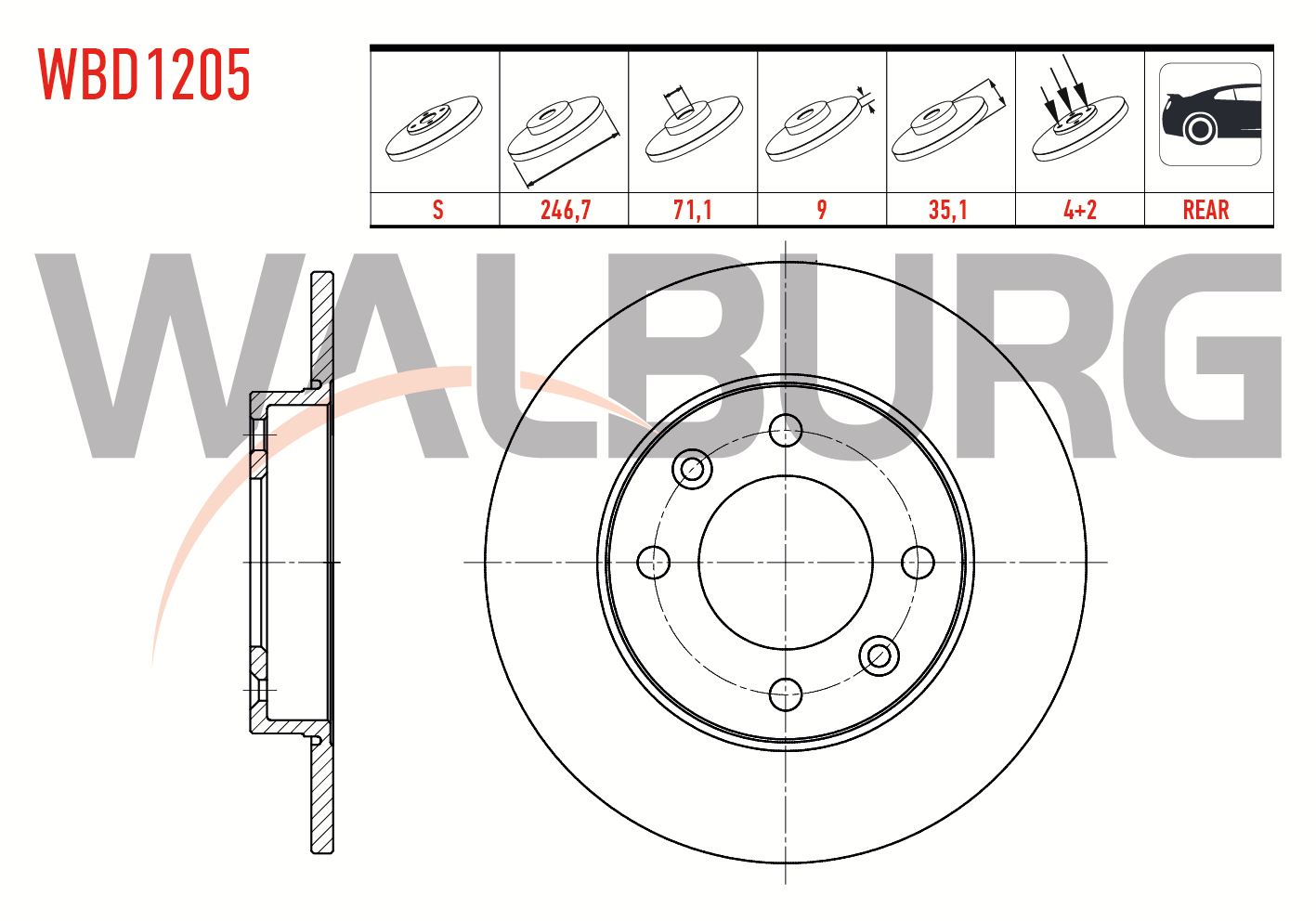 WALBURG WBD1205 | Fren Diski Arka Düz 4 Bjn 246,7X9x71,1X35,1 307 1.4-1.4 HDI-1.6-1.6 HDI-2.0 2000-2007 / Partner 1.6 HDI-2.0 HDI 1996-2008 / Berlingo 1.6 HDI-2.0 HDI 1996-2008 / C3 1.6 HDI 2002-2009 / C4 1.6 HDI 2004-2009 | 2 Adet Takım