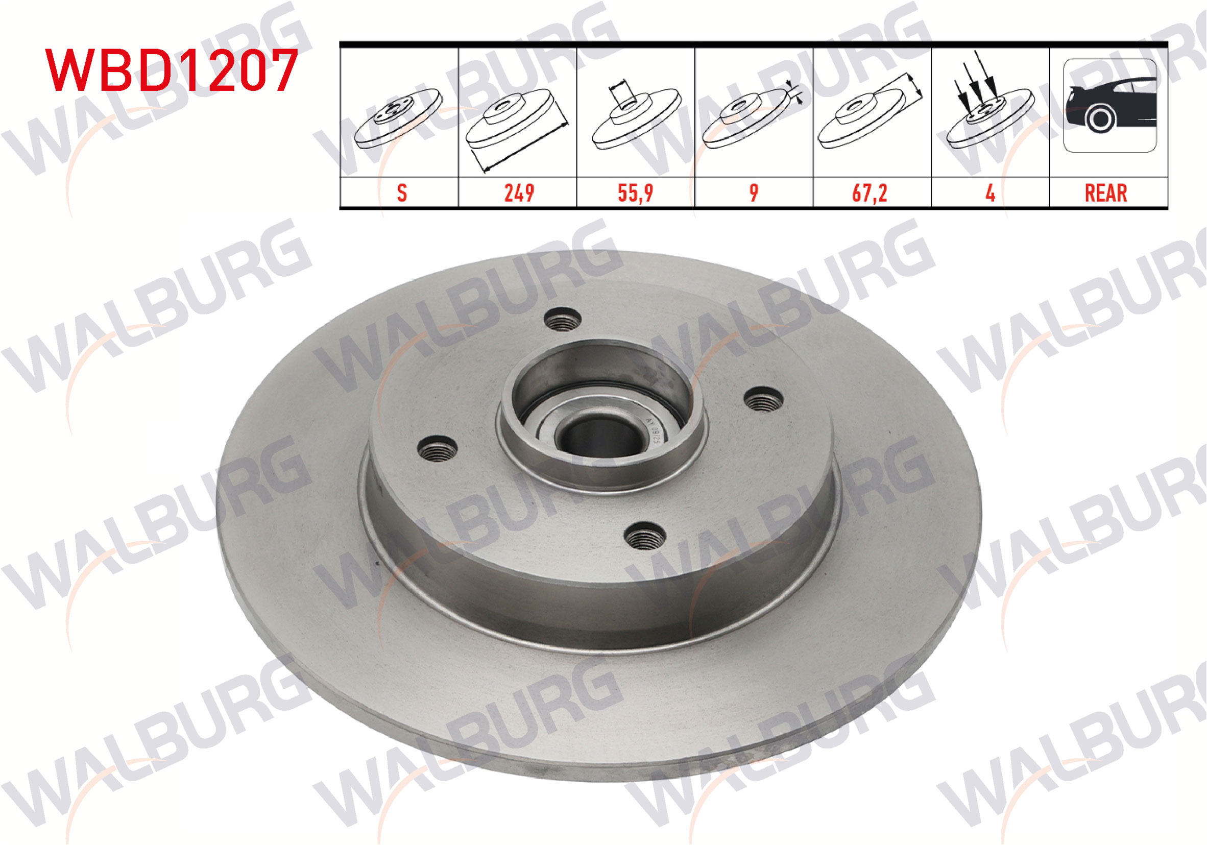 WALBURG WBD1207 | Fren Diski Arka Düz 4 Bjn 249X9x59,92X67 307 1.6 HDI Porya Rulmanlı Manyetık ABS Okuyucu 2000-2007 / 207 1.4 HDI-1.6 HDI-1.6 2006-2012 / C4 1.6 HDI 2004-2009 / Cactus 1.6 Ehdı 2014-/ Ds3 1.6 E-HDI 2009-2013 | 2 Adet Takım