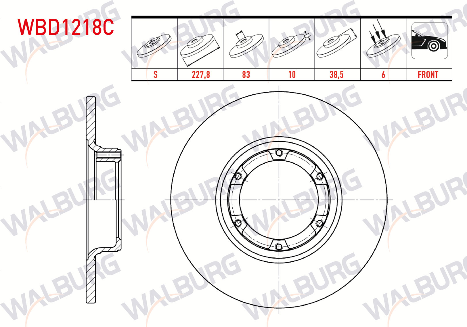 WALBURG WBD1218C | Fren Diski Ön Düz Kaplamalı 4 Bjn 227,8X10x83x38,5 Renault R12 1.3 1971-2000 / R12 1.4 4 1971-2000 | 2 Adet