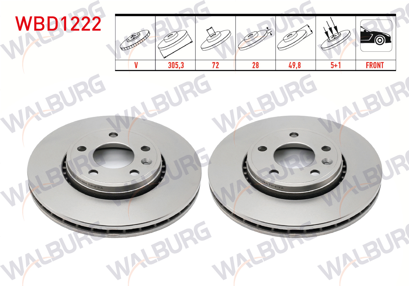 WALBURG WBD1222 | Fren Diski Ön Havalı 5 Bjn 305,3X28x72x49,8 Renault Traffic II 1.9 DCI-2.0 DCI 2001-2014 / Opel Vivaro (J7) 1.9 Dtı 2002-2014 / Vivaro (X83) 2.0 CDTI 2015-| 2 Adet