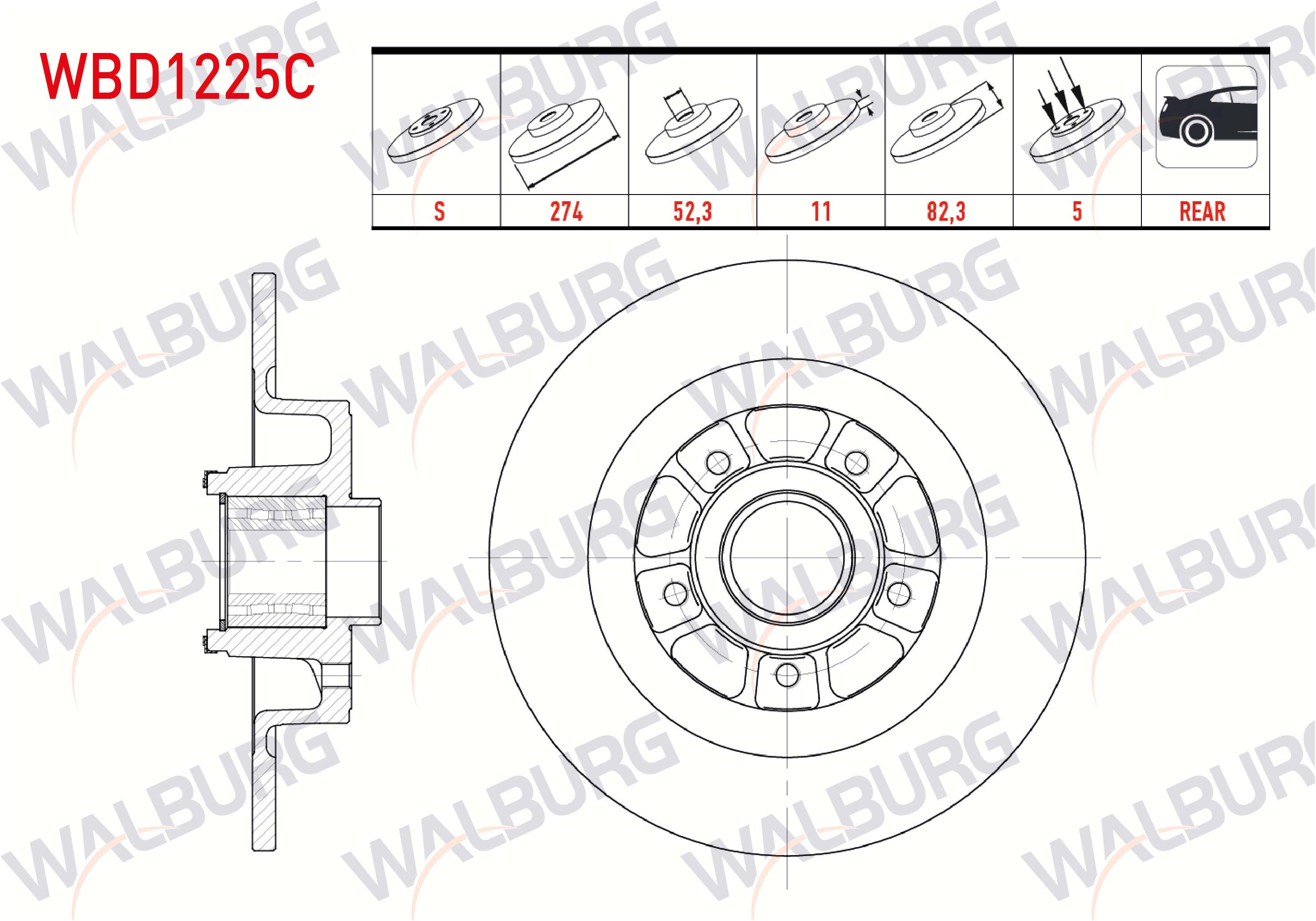 WALBURG WBD1225C | Fren Diski Arka Düz Kaplamalı 5 Bjn 274X11x61,92X82 Renault Laguna II 1.6İ 16V-1.9 DCI-2.0İ 16V Porya Rulmanlı Manyetık ABS Okuyuculu 2001-2007 | 2 Adet