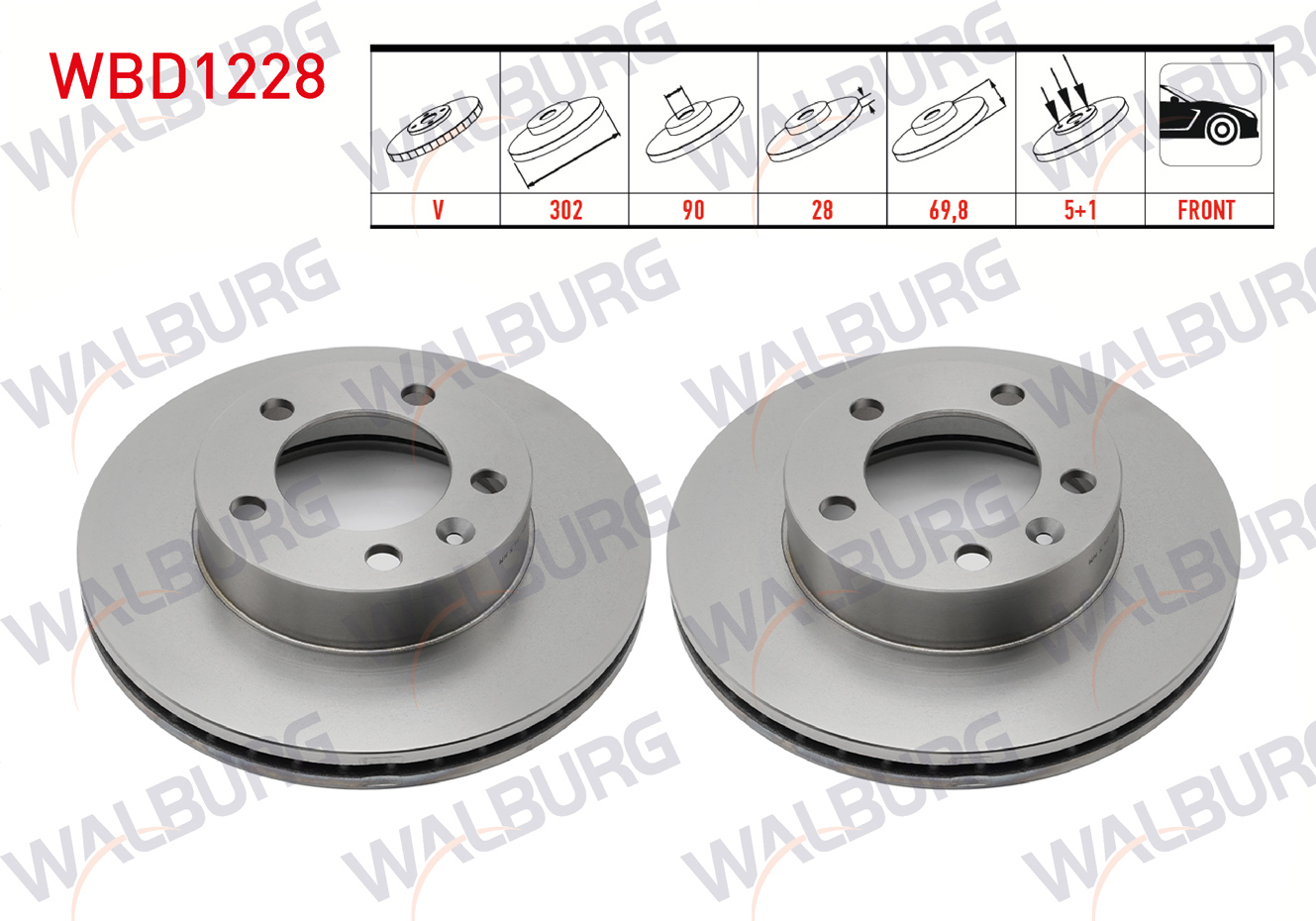 WALBURG WBD1228 | Fren Diski Ön Havalı 5 Bjn 302X28x90x69,8 Renault Master III (Fv) 2.3 DCI 2010-/ Master III (Fv) 2.5 DCI 2010-| 2 Adet