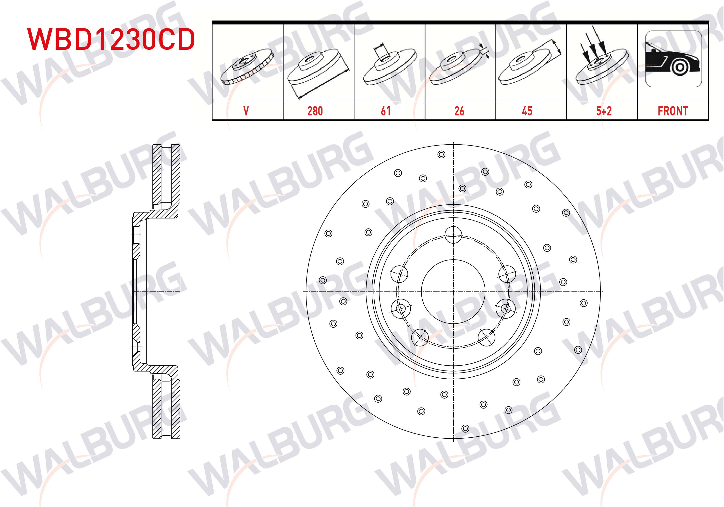 WALBURG WBD1230CD | Fren Diski Ön Havalı Kaplamalı Performans Delikli 5 Bjn 280X26x61x45 Renault Kangoo Express (Fc0 / 1_) 1.5 DCI 2008-/ Kangoo (Kw0 / 1) 1.5 DCI 2008-| 2 Adet Takım