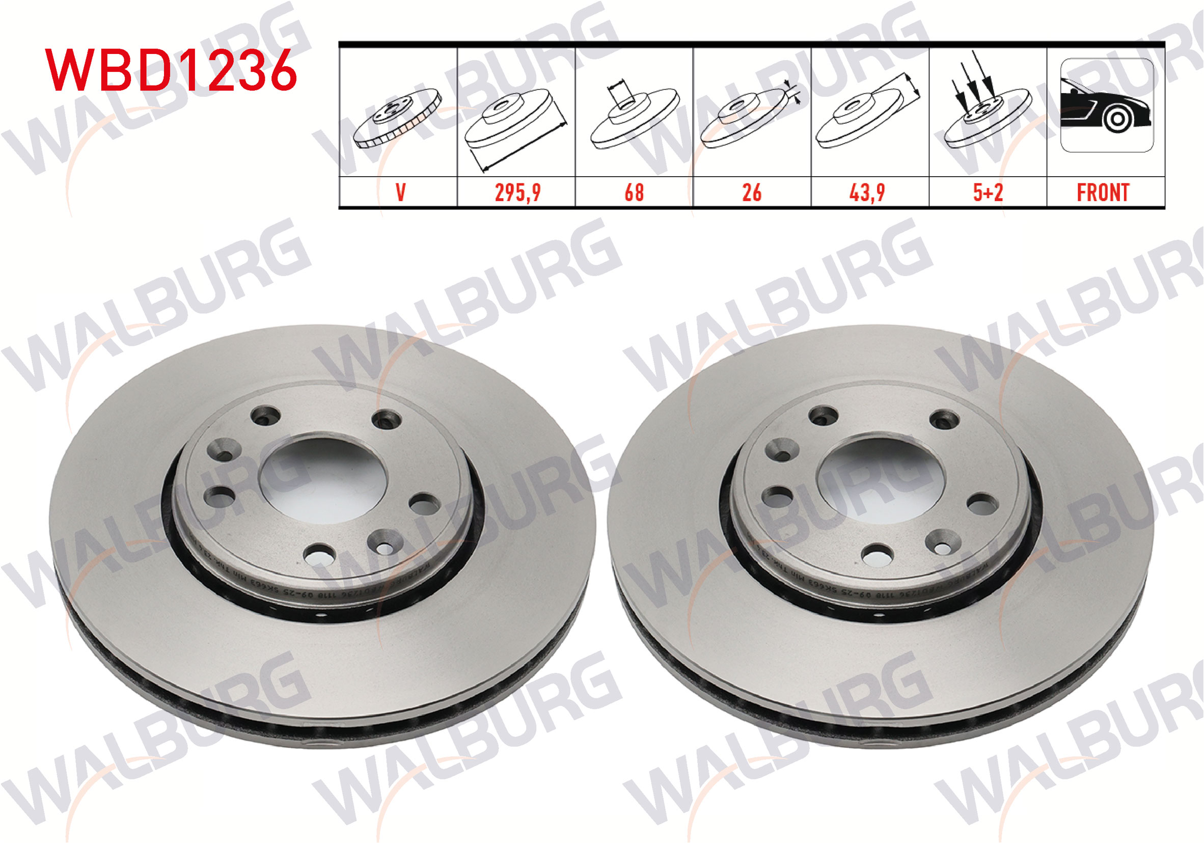 WALBURG WBD1236 | Fren Diski Ön Havalı 5 Bjn 296X26x68x44 Renault Laguna III 1.5 DCI-2.0 DCI-1.6İ 16V 2007-/ Latitude 1.5 DCI-2.0 DCI 2011-/ Scénıc III 1.5 DCI-16İ 16V 2009-| 2 Adet Takım