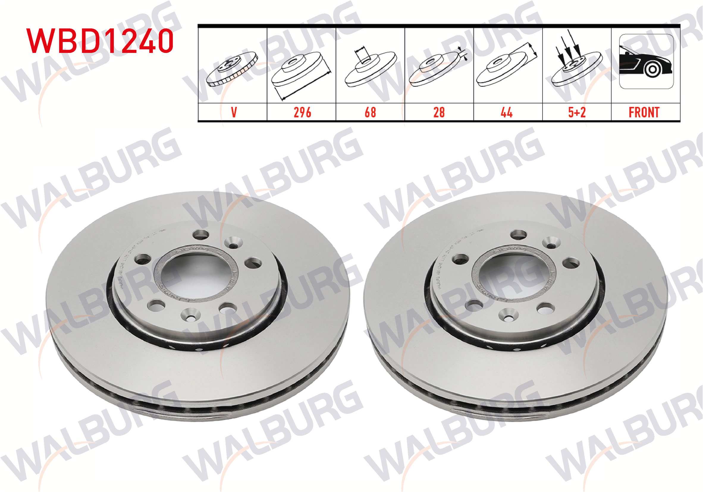 WALBURG WBD1240 | Fren Diski Ön Havalı 5 Bjn 296X28x68x44 Renault Traffic III 1.6 DCI 2014-/ Opel Vivaro (X83) 1.6 CDTI 2015-| 2 Adet Takım